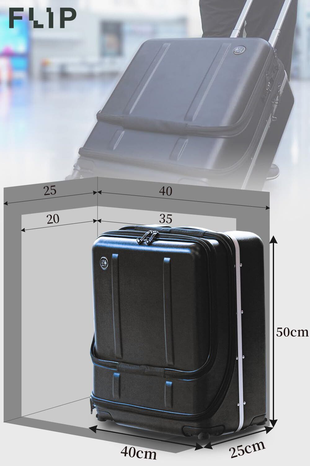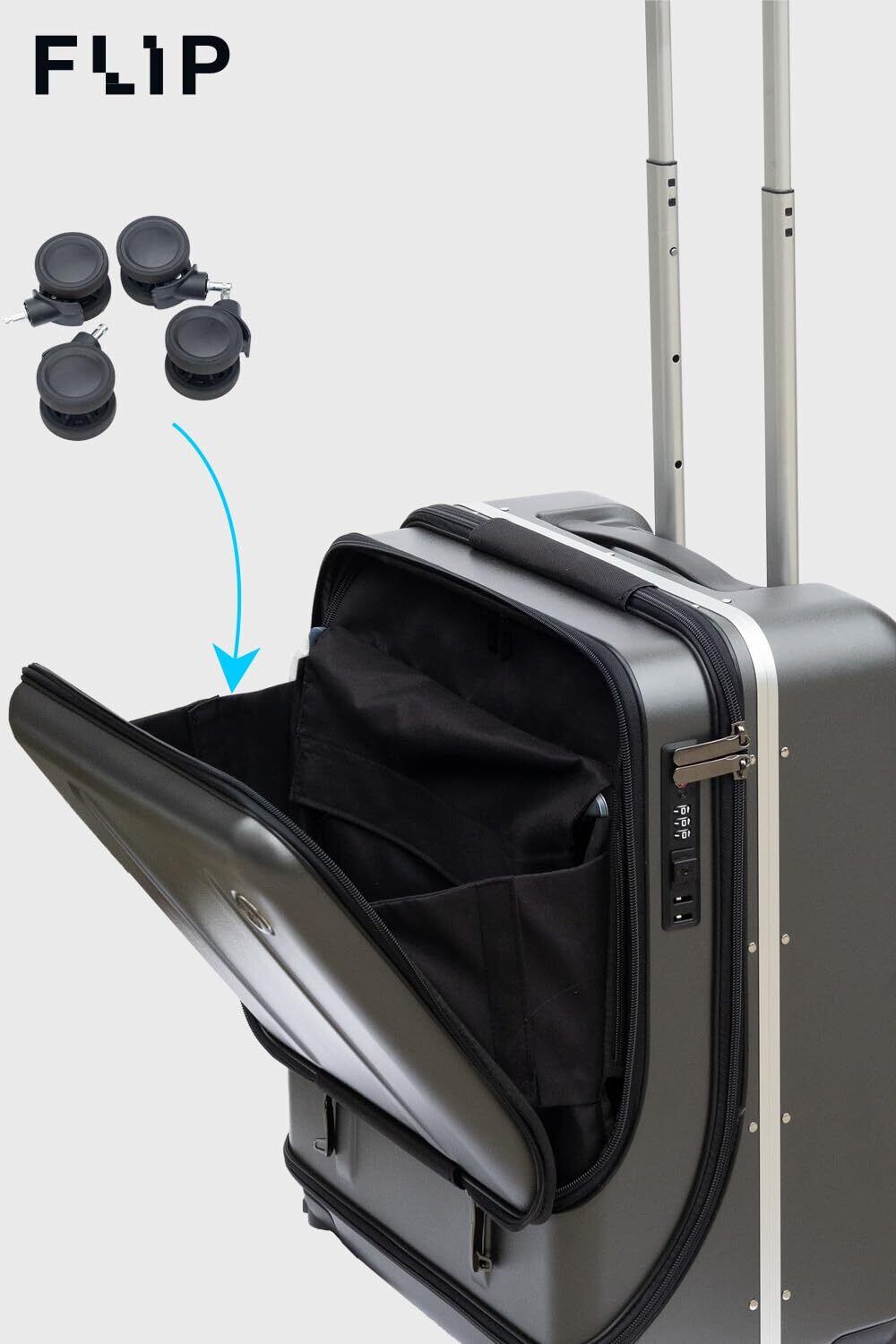[EDISON LAB] 棚になるスーツケース47L静音キャスター外して機内持ち込みできるFLIPフリップ ポリカーボネート軽量Sサイズ,ダブルTSAロック、フロントオープンで17インチPCも収納ビジネス旅行にキャスター交換で簡単に自分で修理メンズ、レディースに人気(ブラック)