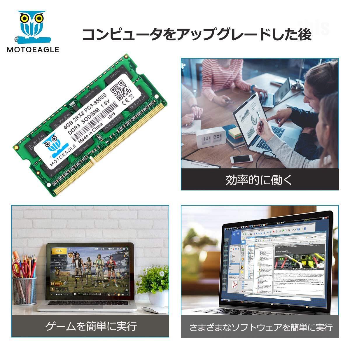 Motoeagle PC3-8500 DDR3 1066Mhz 4GB×2枚 ノートPC用メモリ1.5V 204Pin CL7 Non-ECC SO-DIMM Mac 対応 高い効率操作