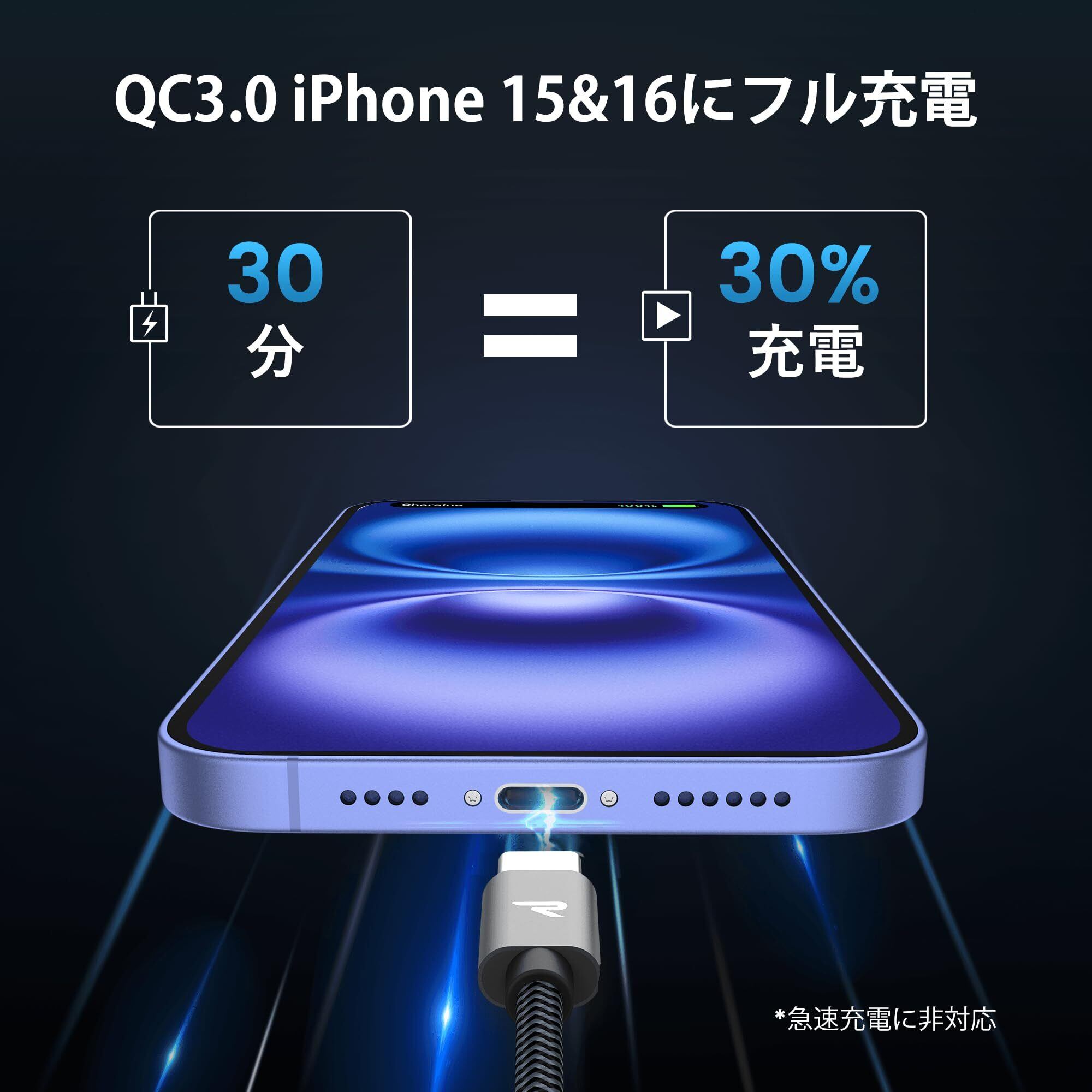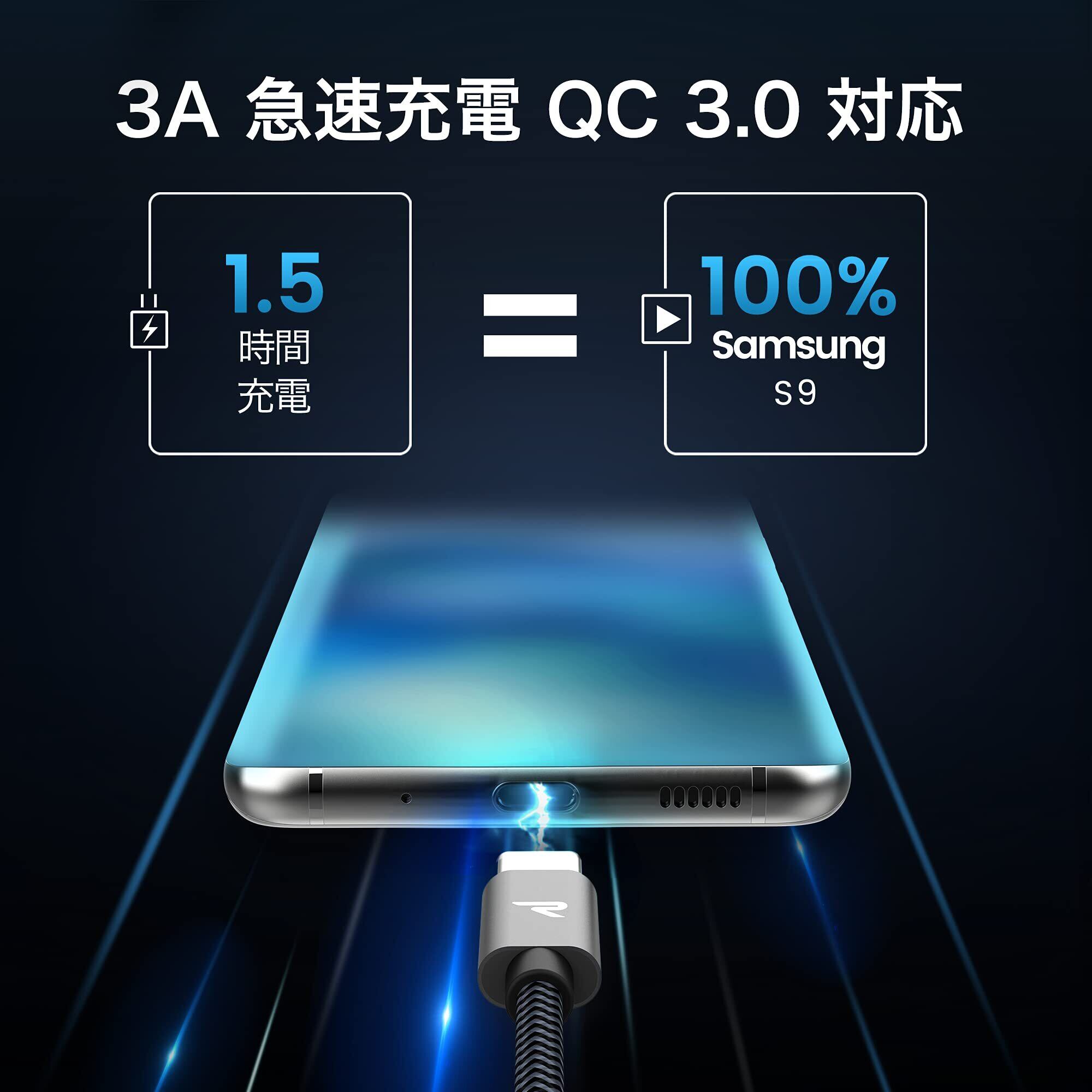 【快適なQC3.0急速充電】当社のUSB CケーブルはQuick Charge 3.0に対応し、3.6V〜20V/3Aの高速充電が可能です。お使いのスマートフォンやタブレットなどのデバイスを短時間でフル充電し、貴重な時間を節約できます。急いでいる時でも便利で利用できます。