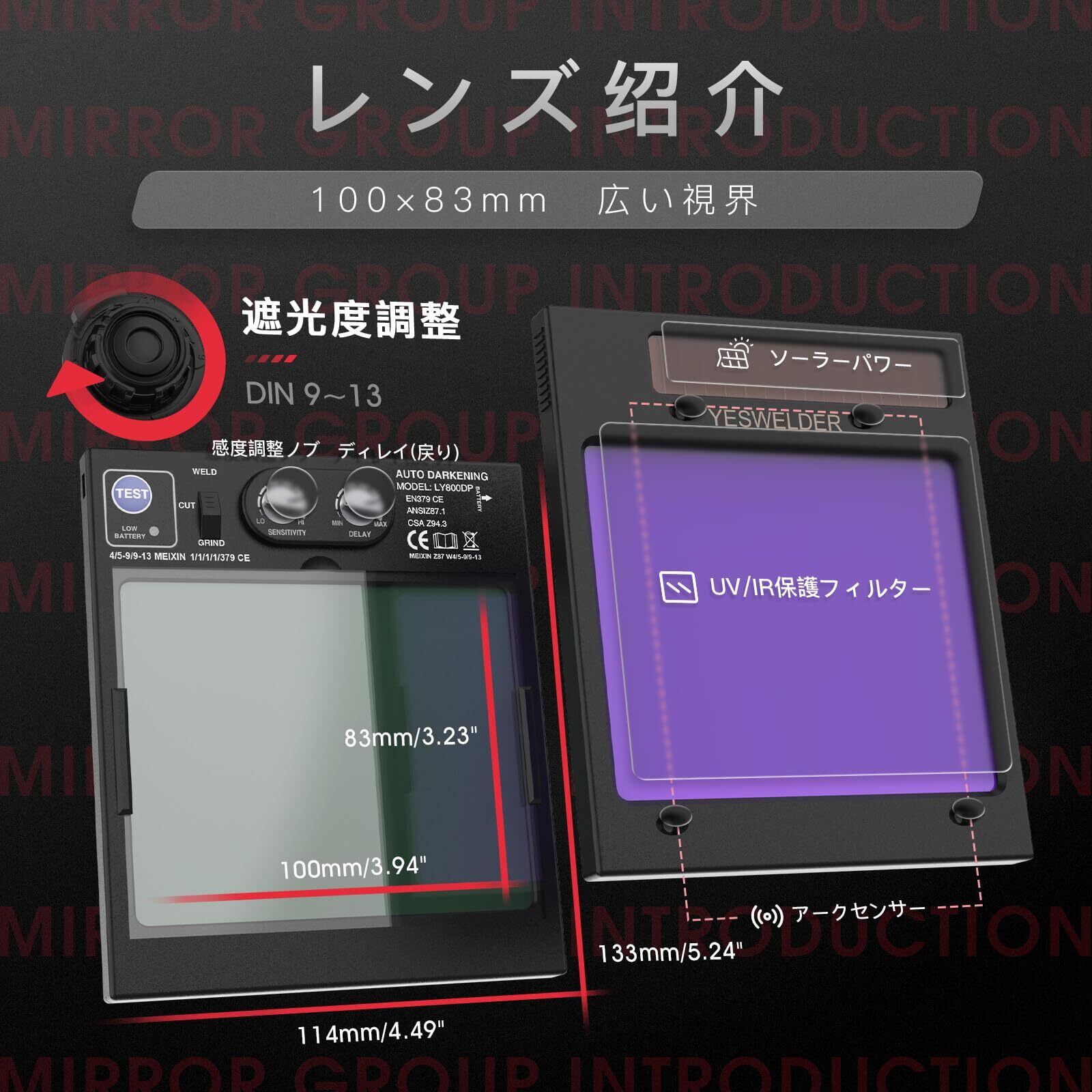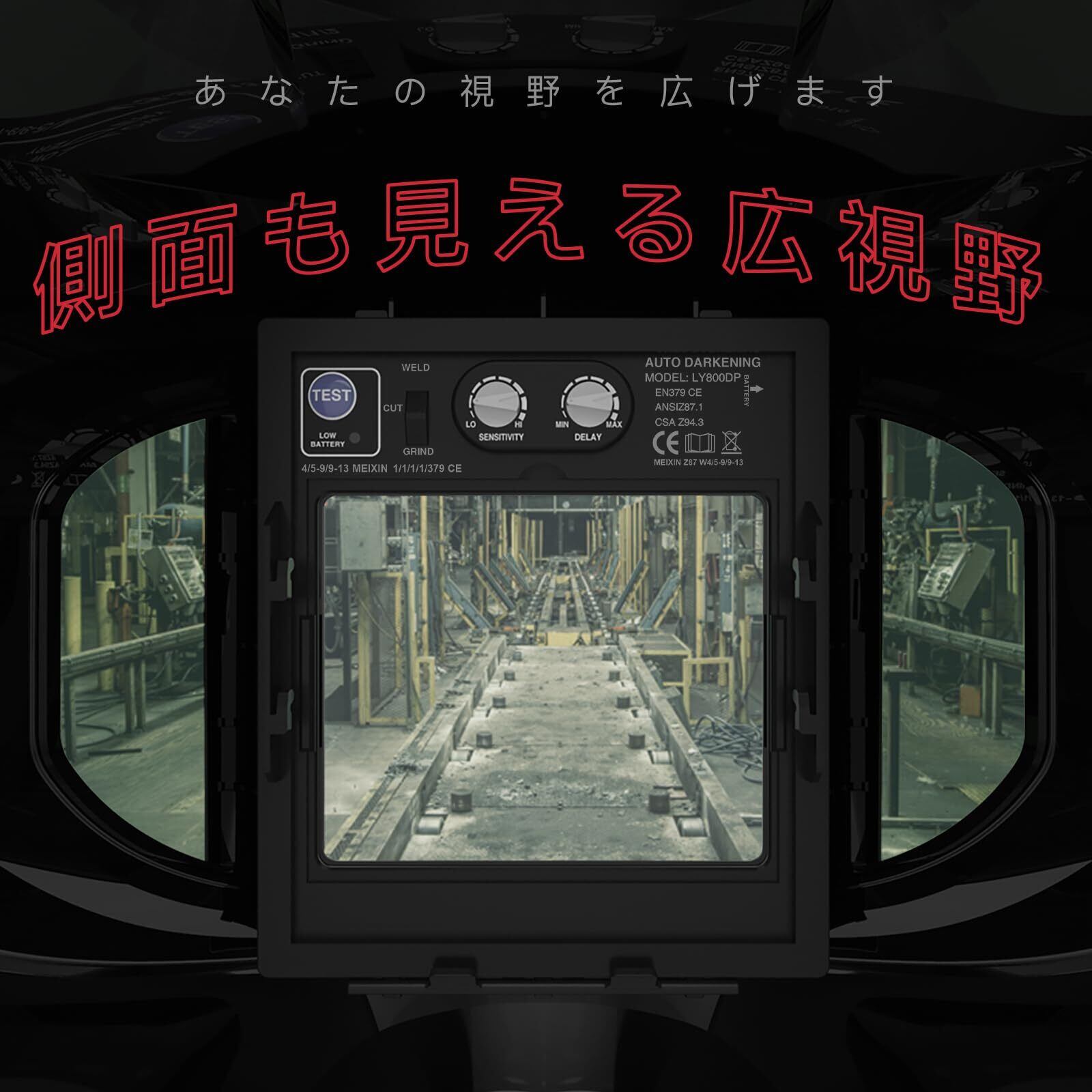 YESWELDER 溶接面 自動遮光 側面も見える広視野 4アークセンサー 遮光速度:1/30000秒 遮光度4/5-9/9-13 本当の色を映す TIG MIG ARC溶接 研磨 プラズマ切断に対応