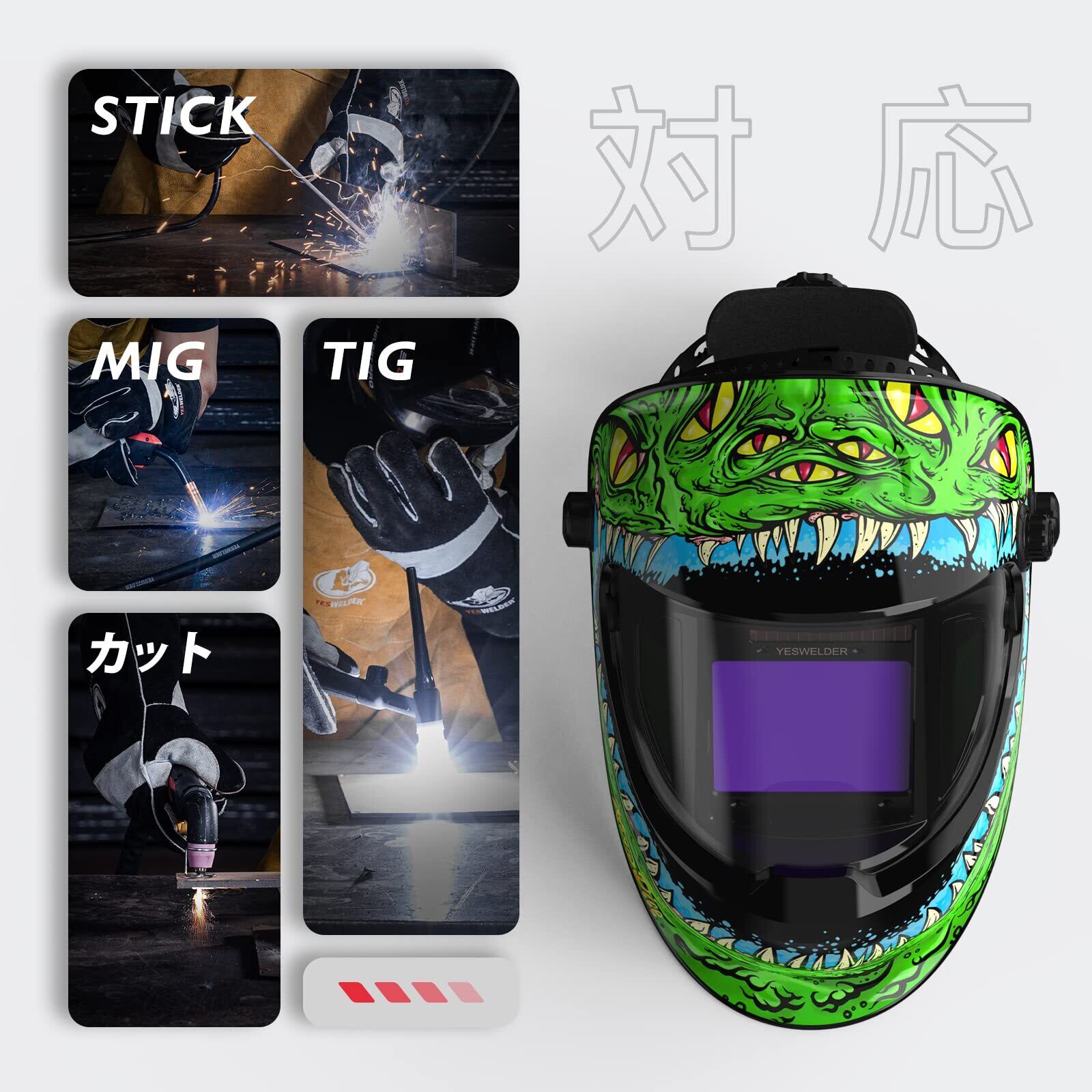 用途: TIG、MIG、MMA、切断、研磨など
