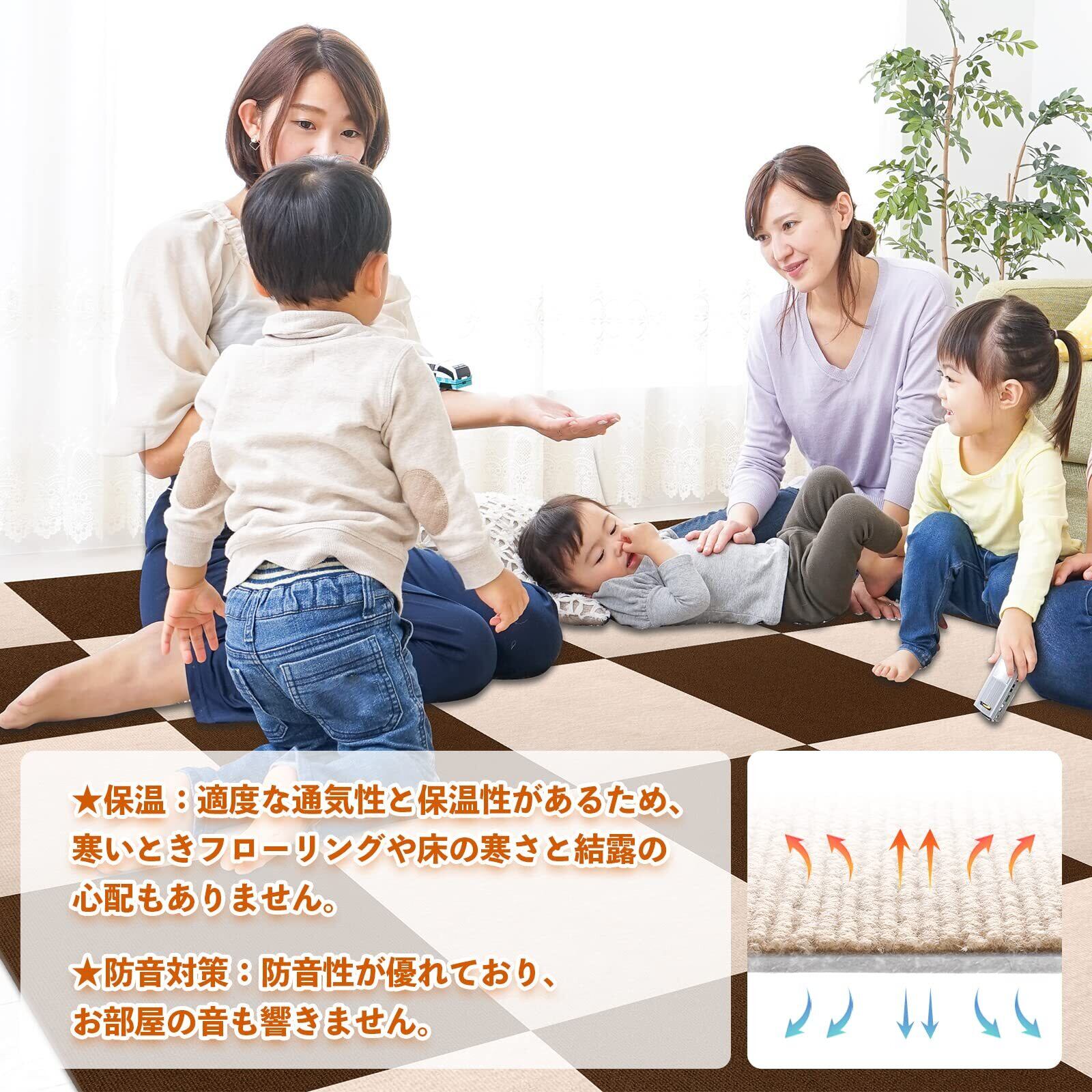 3、【優れた機能性】滑りとめ:表面4mm厚の高品質ポリエステルは滑りとめの性能をアップさせます、足腰が弱いご老人や子供も心配なく家中に歩けます。保温:適度な通気性と保温性があるため、寒いときフローリングや床の寒さと結露の心配もありません。防音対策:防音性が優れており、お部屋の音も響きません。適応性が広い:高品質の材質で作られマットは、いろんな場所で使える!①リビング。②玄関。③台所。④和室(洋式)部屋。⑤廊下。⑥ペット用。⑦子ども部屋。⑧オフィス。⑨保育園や施設など。お客様の都合によって、必要な場所に好きなだけ、使ってください。
