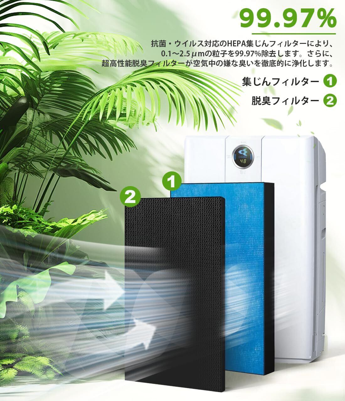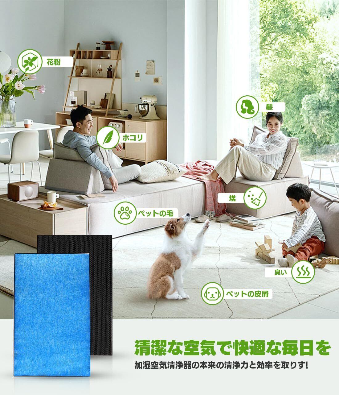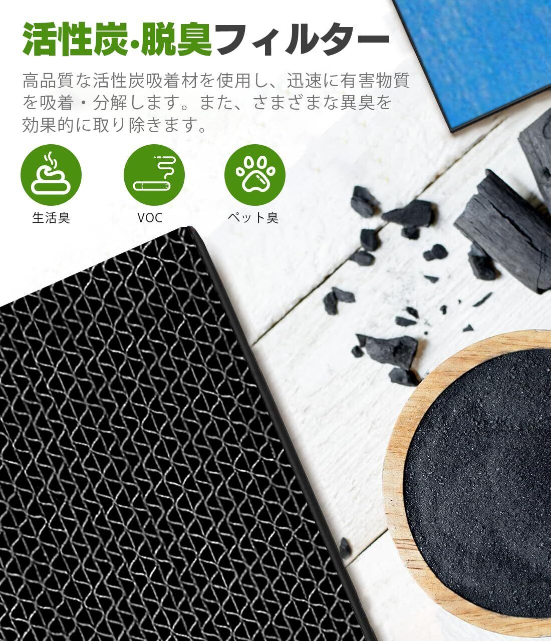 【製品機能】HEPA集じんフィルター:花粉、アレル物質(ダニの ふん・死がい)、カビ菌、 ホコリ・チリ、タバコの 煙(粒子)、ペットの毛など を捕集 脱臭フィルター:料理臭、ペット臭、部屋干し衣類の生乾き臭、体臭、加齢臭などを消臭
