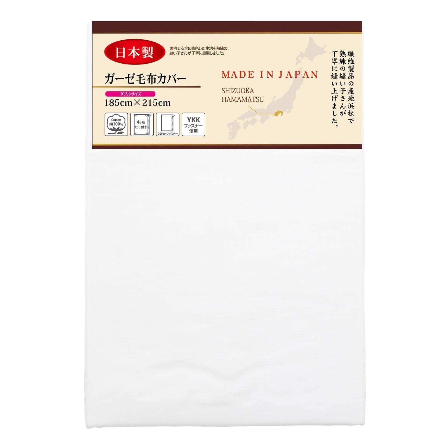 メリーナイト 毛布カバー ガーゼ ホワイト ダブル 約185×215cm 日本製 綿100% 軽量 通気性 ふんわりやさしい肌触り 吸水性 洗える すぐ乾く 衛生的 清潔 毛布の毛羽の飛散を防ぐ 秋冬寝具 1821-06