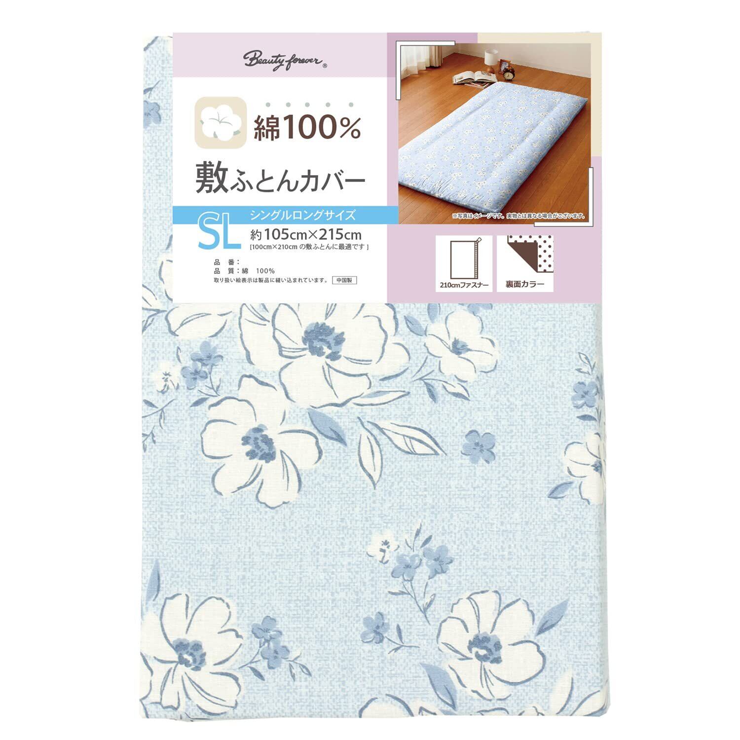 メリーナイト 敷き布団カバー 「アネモネ」 ブルー シングルロング 約105×215cm 綿100% 吸湿性 通気性 心地よい肌触り オールシーズン 洗える CT13113-76