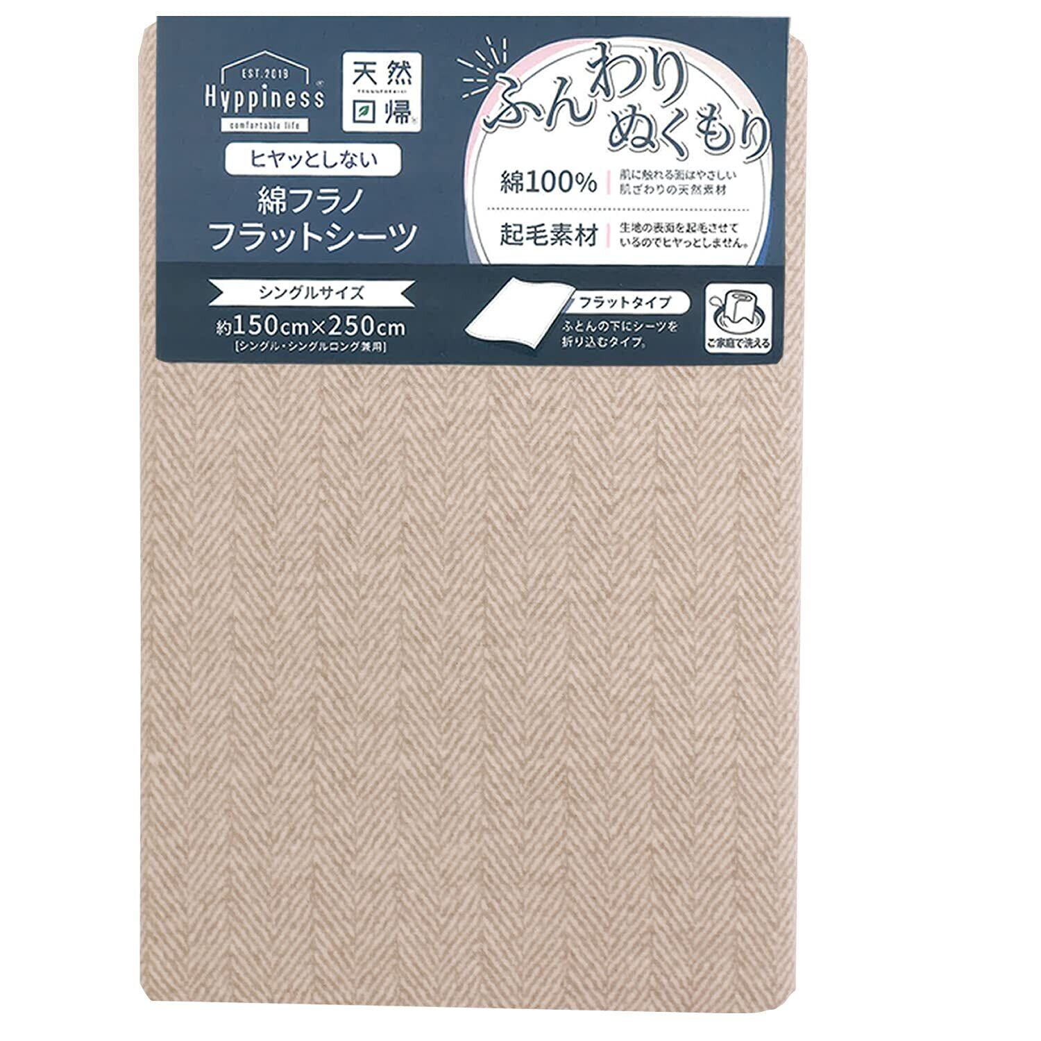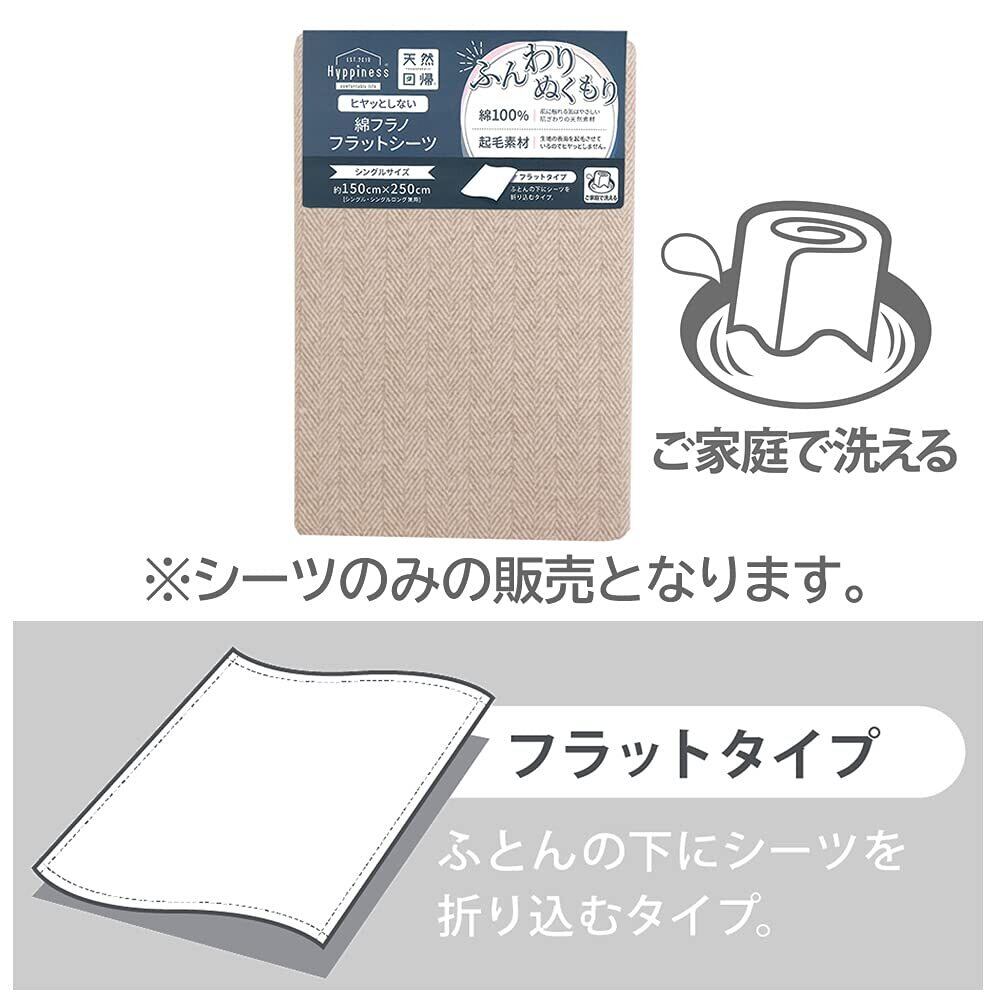 メリーナイト(Merry Night) シーツ フラットシーツ 起毛 ヘリンボーン柄 「フィスク」 ベージュ 敷布団用 シングル 約150×250cm 綿100% フラノ生地 ふんわり ぬくもり ヒヤっとしない 肌ざわり 秋冬寝具 洗える HP72007-96