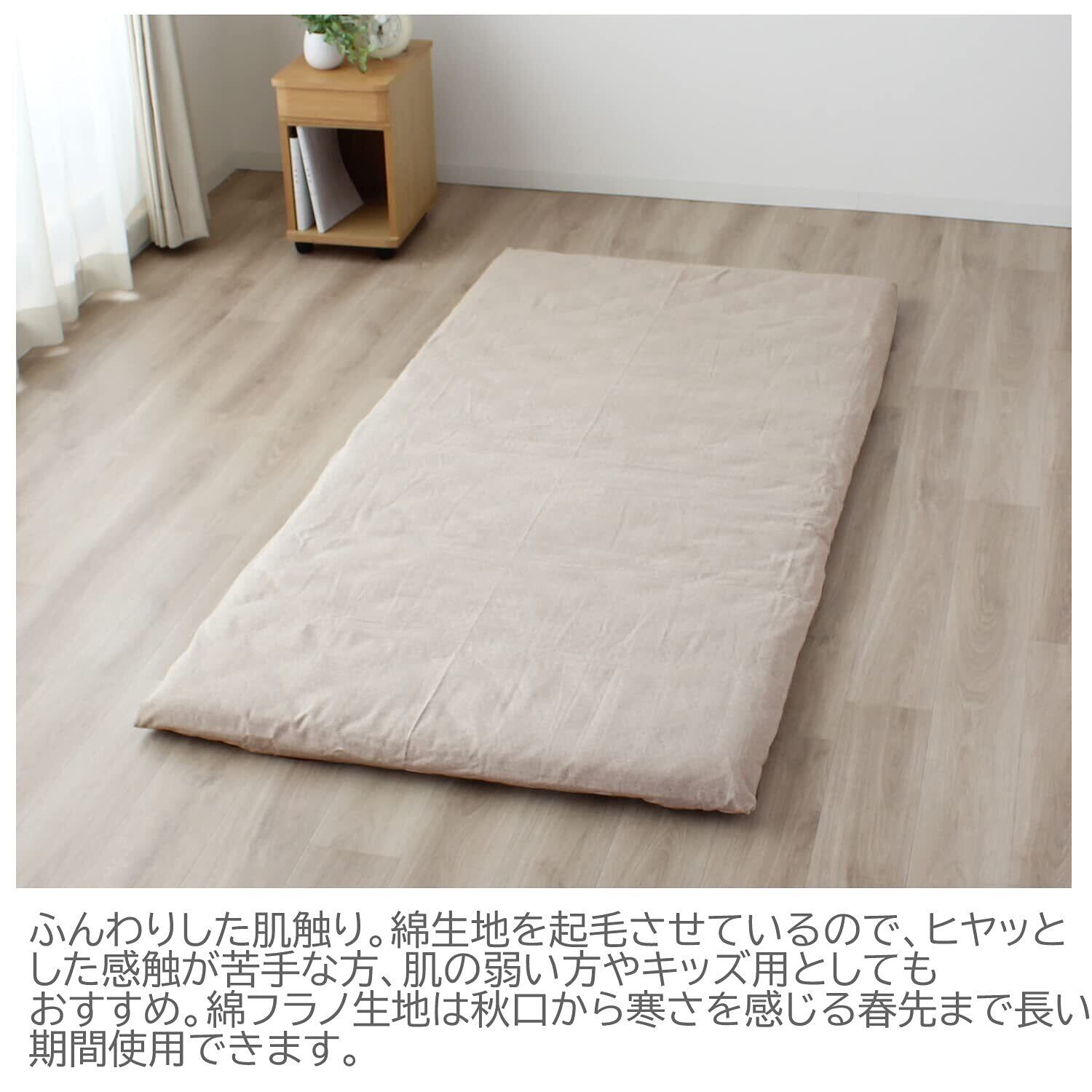 敷ふとんのシングル・シングルロングサイズ兼用タイプ。敷布団の下に折り込む1枚布タイプで取り扱いも簡単。