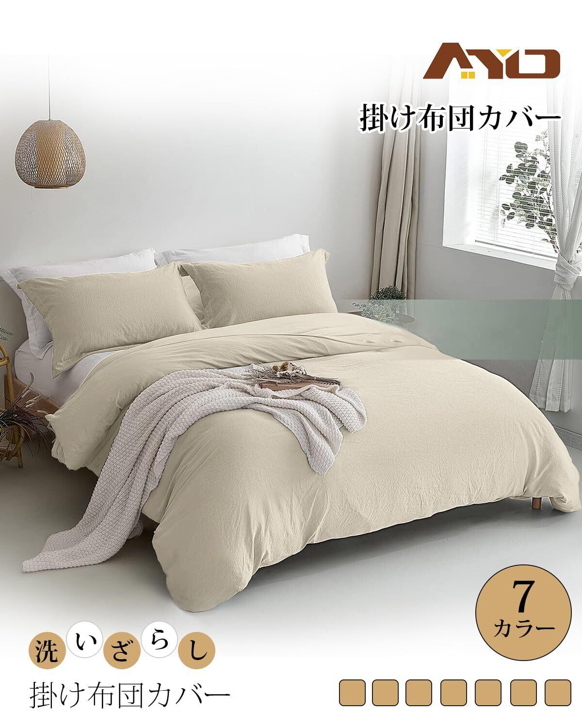 AYO(エイワイオー) 掛け布団カバー シングル 洗いざらし 超柔らかい オールシーズン ダブルファスナー シワ加工 ピーチスキン 布団カバー 吸水速乾 丸洗いOK 肌に優しい 無地 かけふとんカバー(150X210cm·ベージュ)