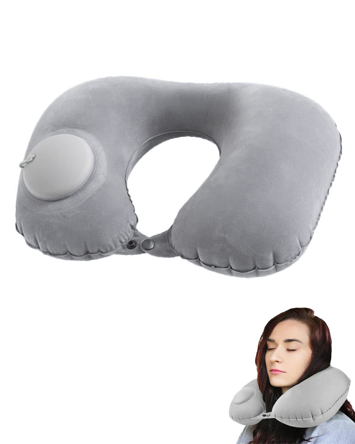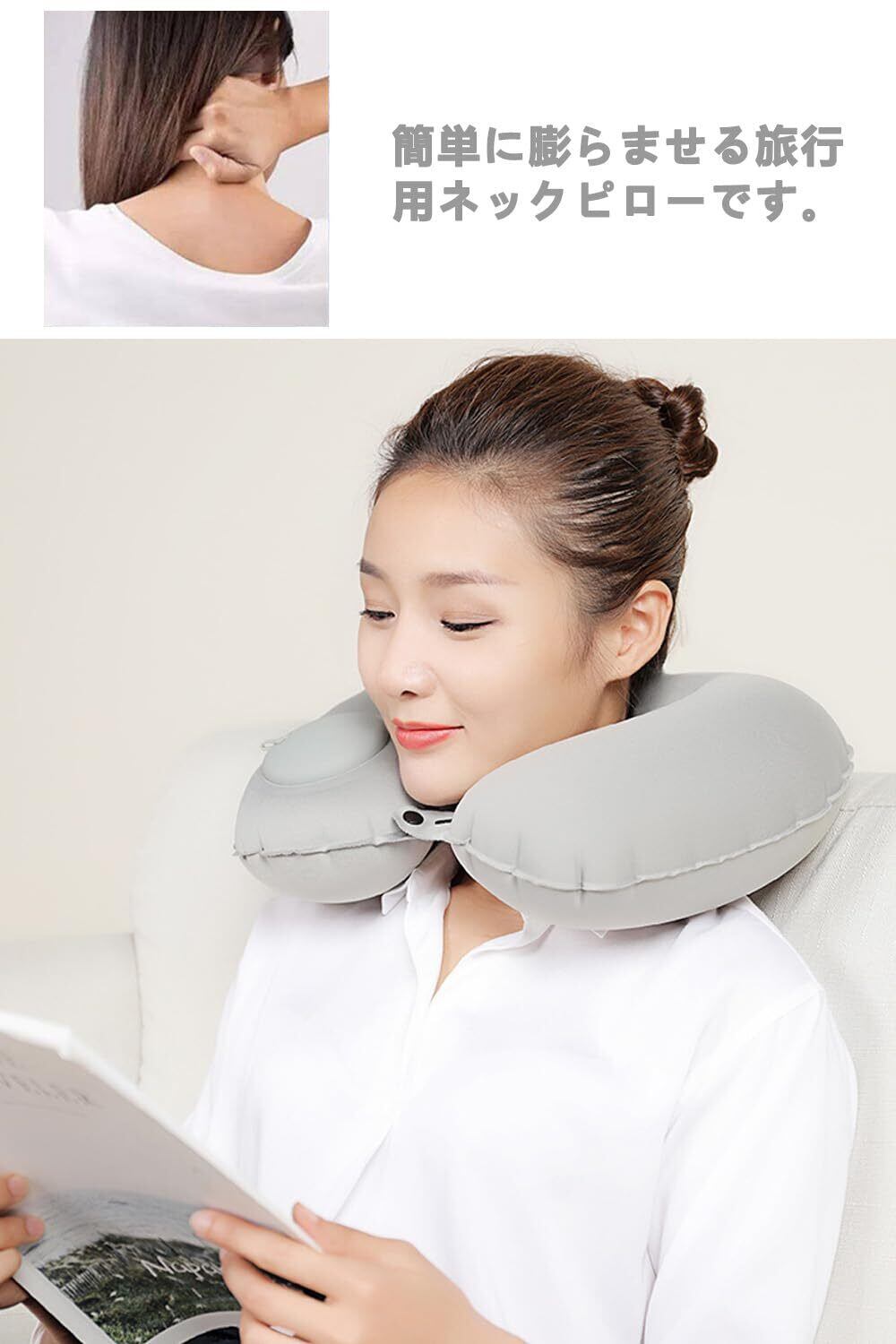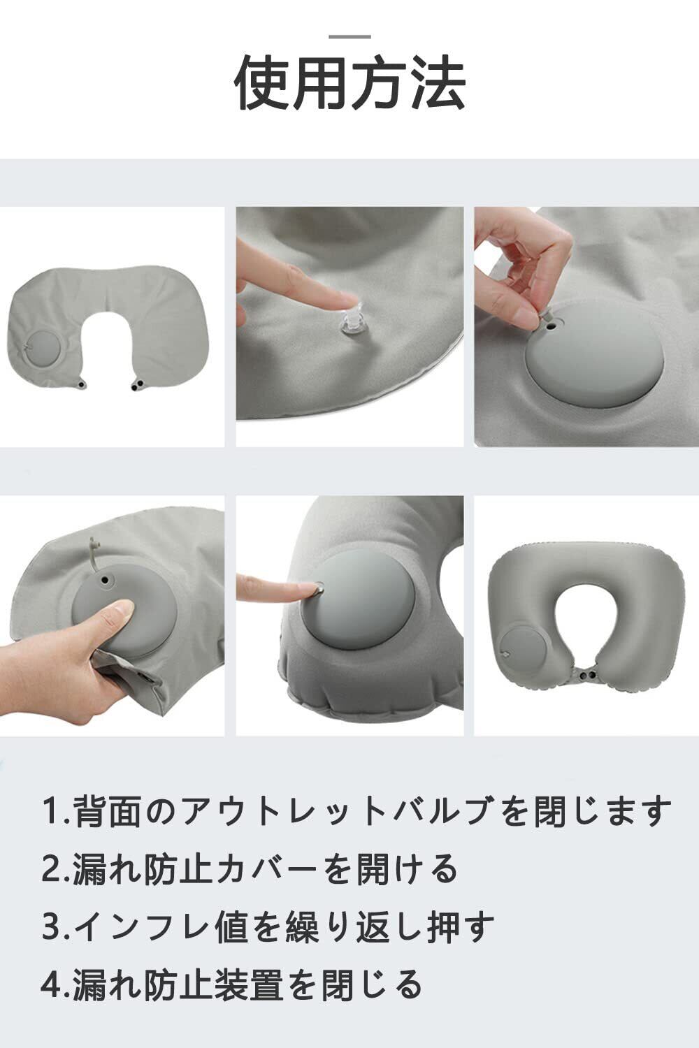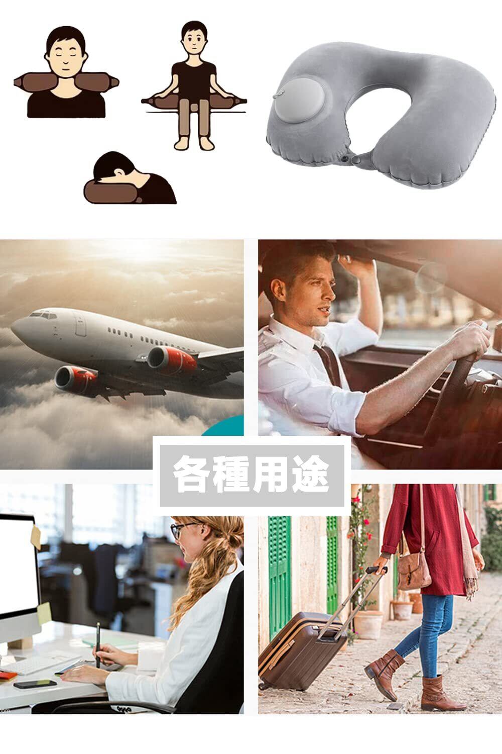 YFFSFDC ネックピロー U型まくら 携帯枕 首枕 手動プレス式膨らませる 旅行用 空気枕 エアーピロー 飛行機 旅行枕 軽量 便利 (グレー)