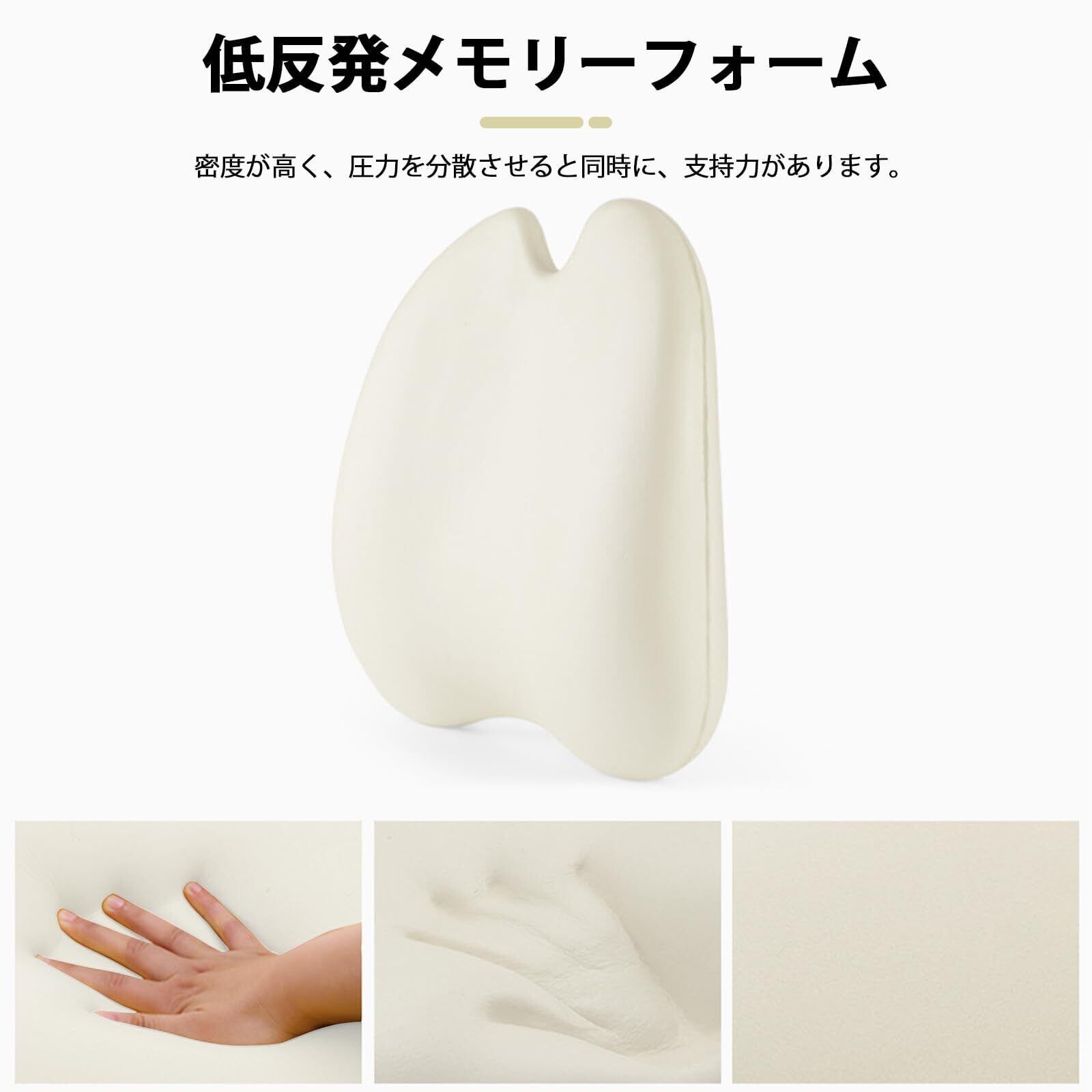 【高品質】この腰クッションをを使えば、長時間座っていても快適です。高密度低反発のメモリーフォームを採用し、支持力及び耐久性などの面で他の低密度製品より優れている。