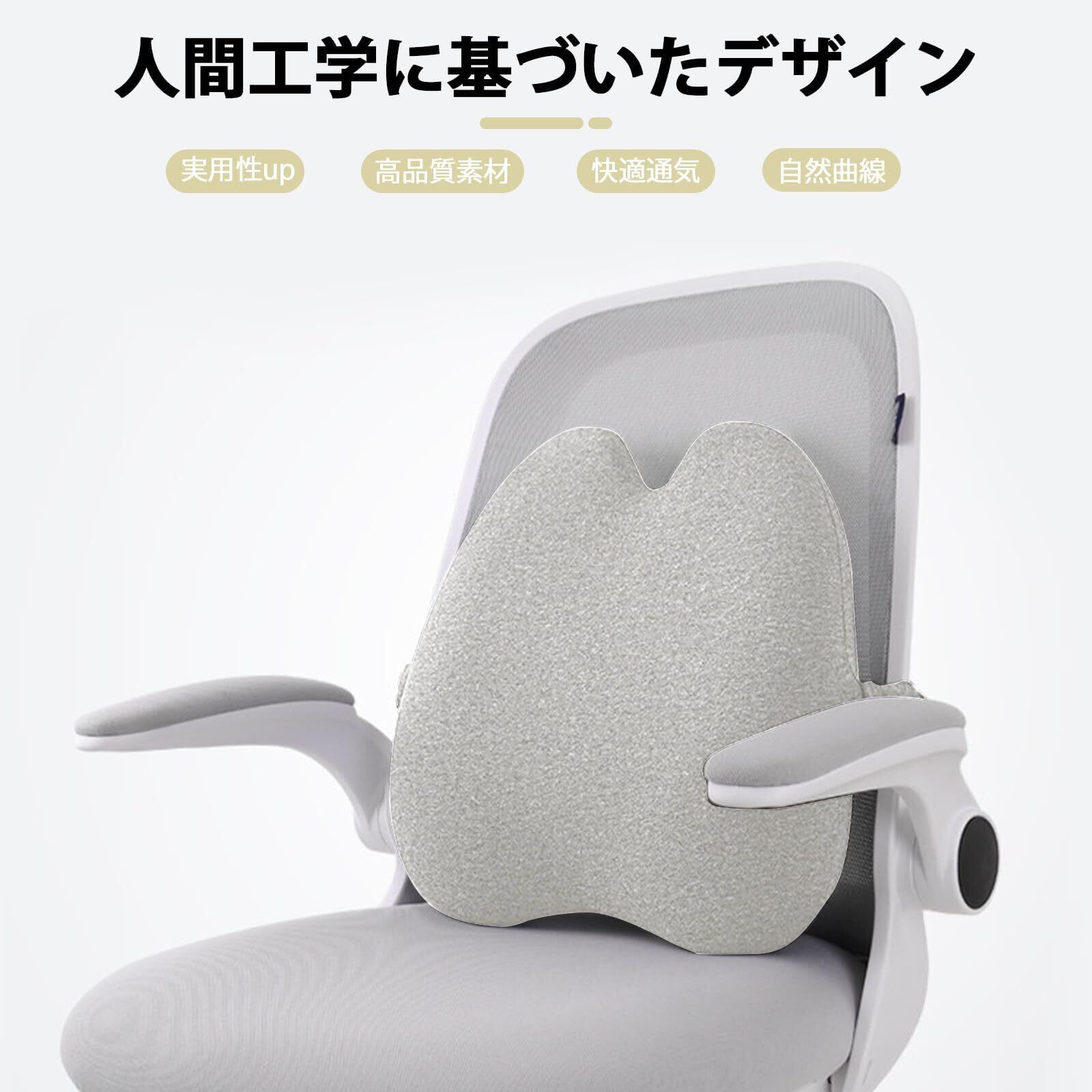 腰 クッション 椅子 ランバーサポート オフィス 腰枕 背もたれ クッション 人間工学 腰当て クッション 通気性 リラックス カバー洗える ライトグレー