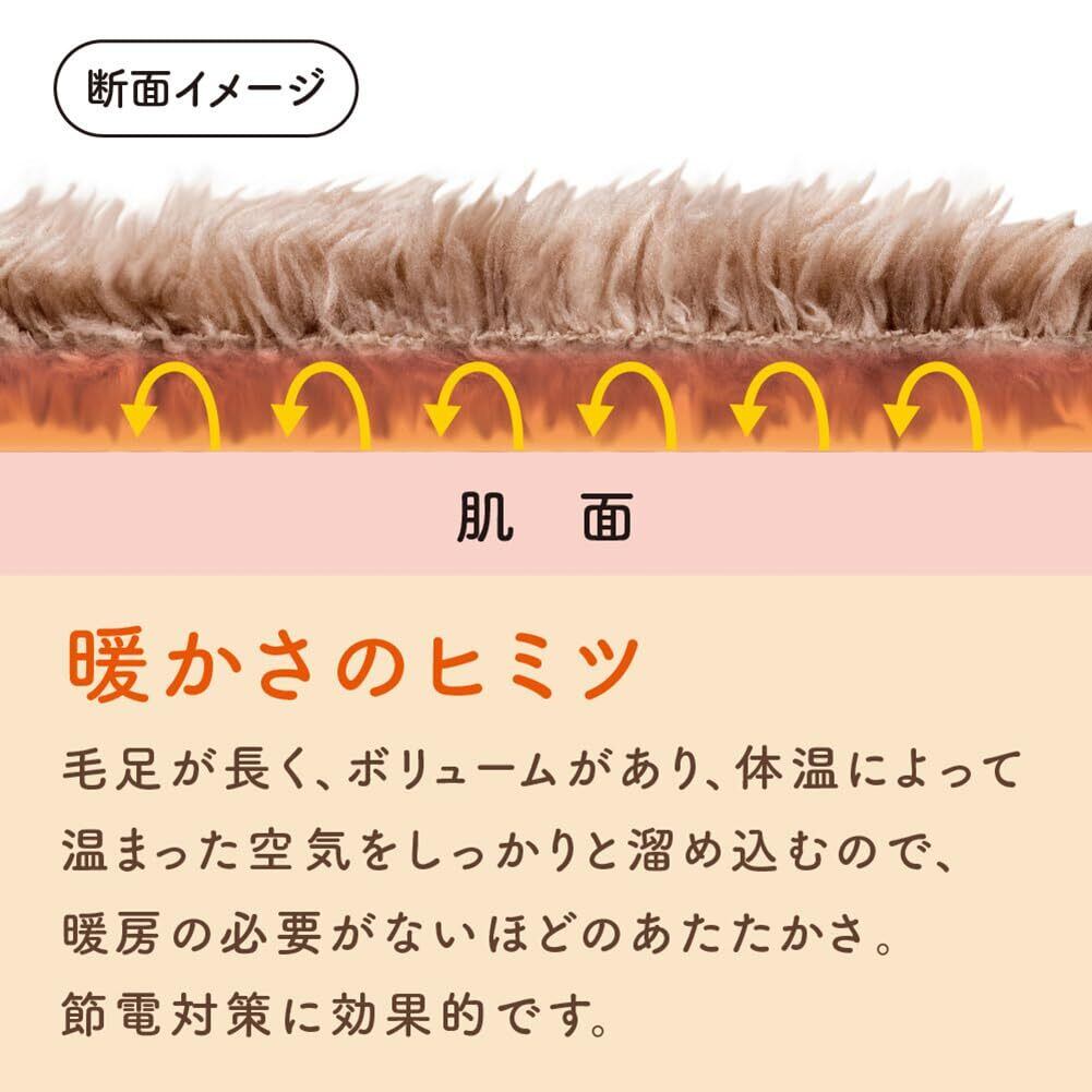暖かさのヒミツ。毛足が長く、ボリュームがあり、体温によって温まった空気をしっかりと溜め込むので、暖房の必要がないほどのあたたかさ。節電対策に効果的です。