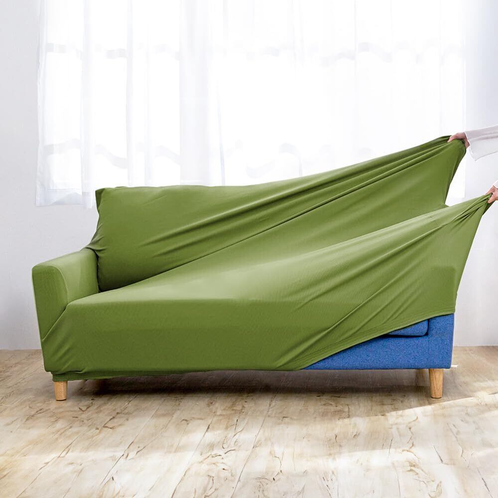 アイリスプラザ ソファカバー 3人掛け かけるだけの簡単ソファカバー 伸縮素材伸 自宅で丸洗いOK 抗菌防臭 程よい凹凸のワッフル調 サラッと軽い触り心地 通気性バッチリ オールシーズン使用OK ダークグリーン(DGN) NSFC-30