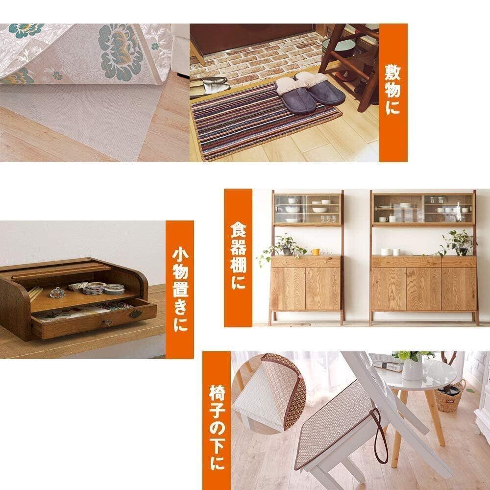【自由カット・簡単装着】ハサミで簡単にカットして、好きな大きさで使用することができます。ハサミでカットするだけなので、キッチン・玄関マット・カーペットなど、さまざまな場所に活用できます。さらに、自由にカットできるため、食器棚では、振動で倒れやすいグラスや、お気に入りのお皿の下に敷いて、滑り止めとして活用できます。無駄なく使えます。