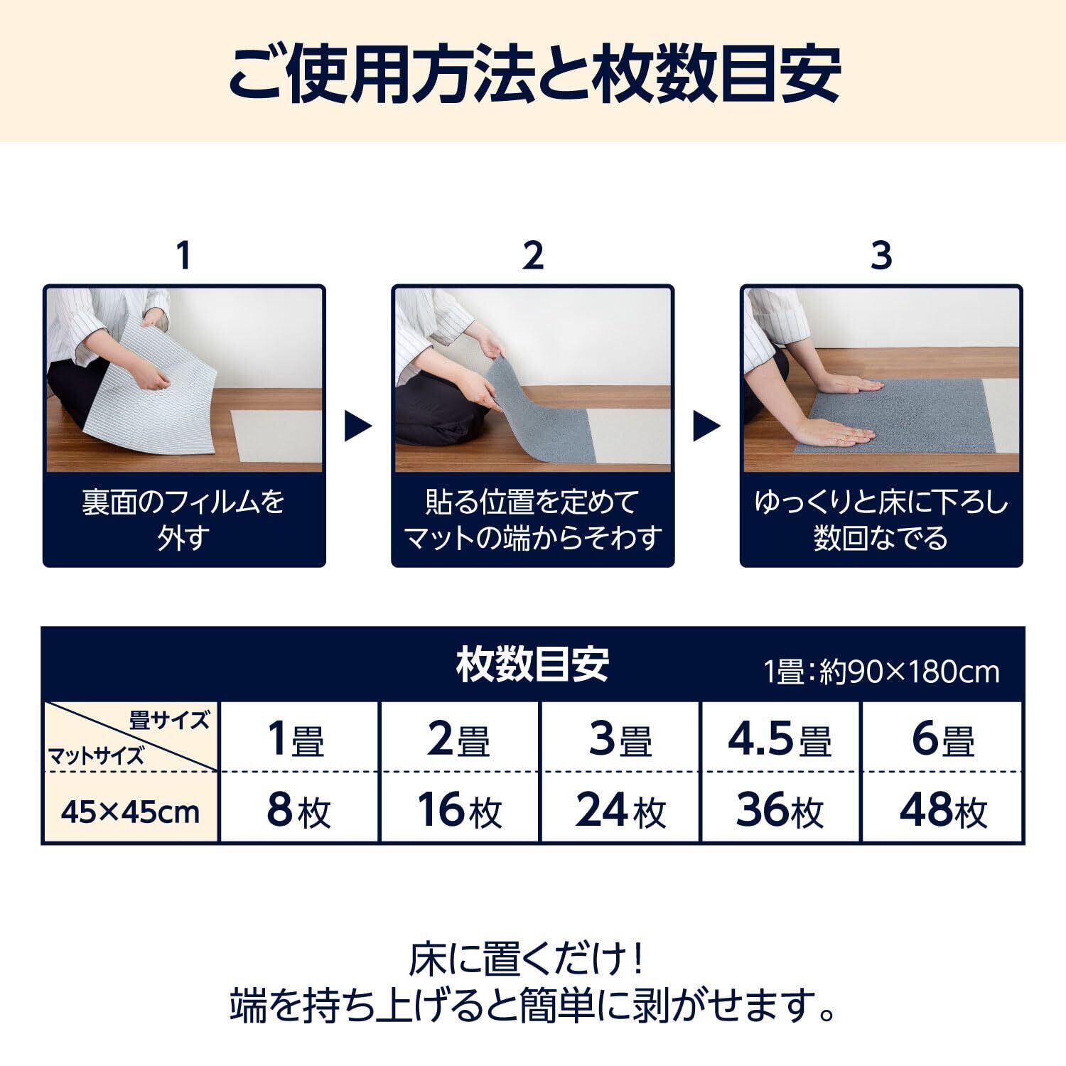 サイズは、1枚45×45㎝のジョイントタイプの大判サイズマットです。