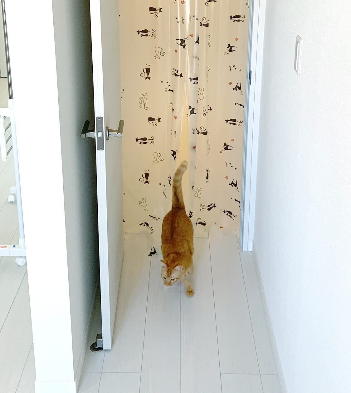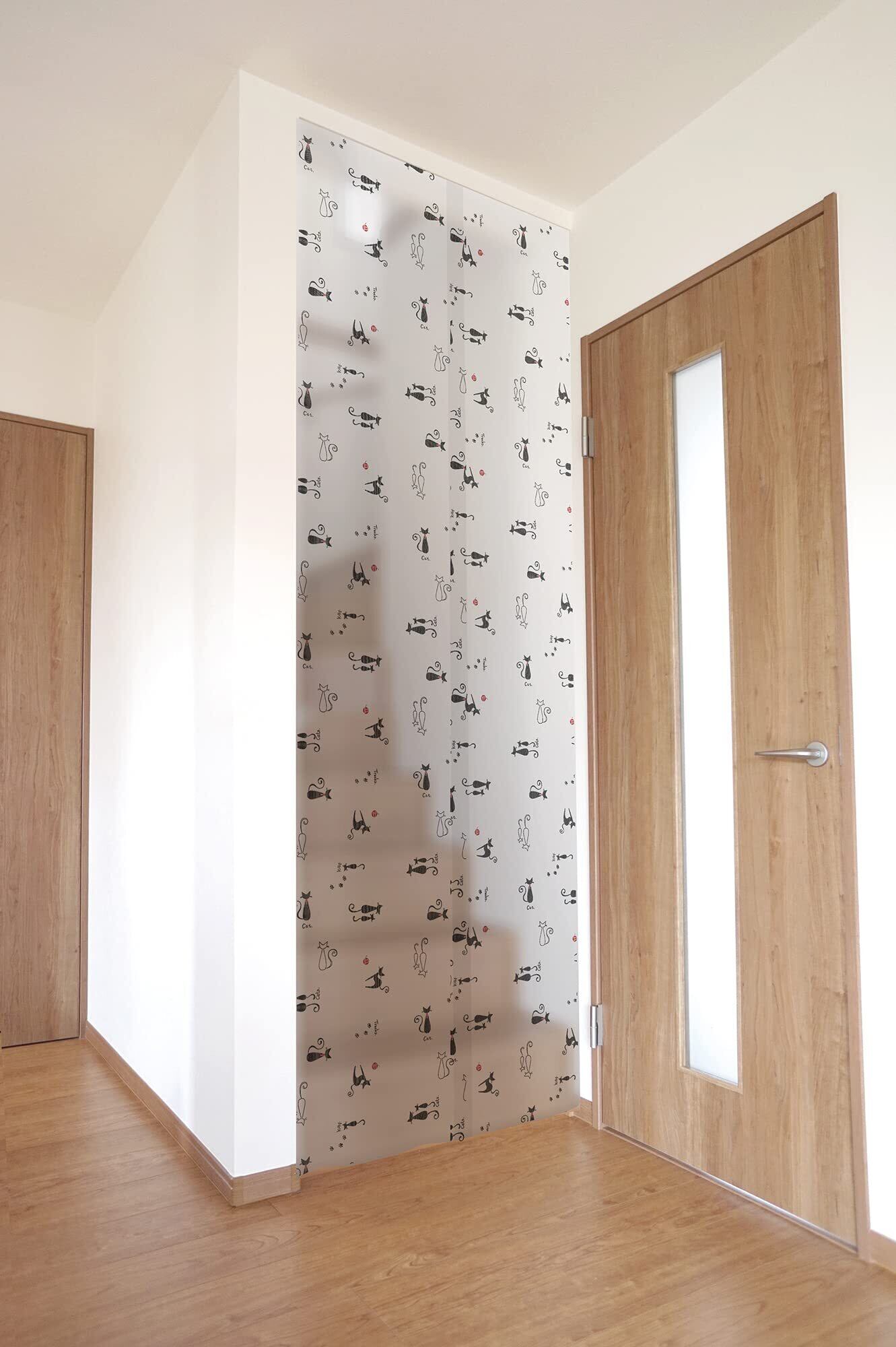 わんちゃん・ねこちゃん出入り自由! ドアを開けたままで冷気・暖気を逃さない 省エネ対策 間仕切り のれん LMP-01P ネコ柄 90cm×250cm