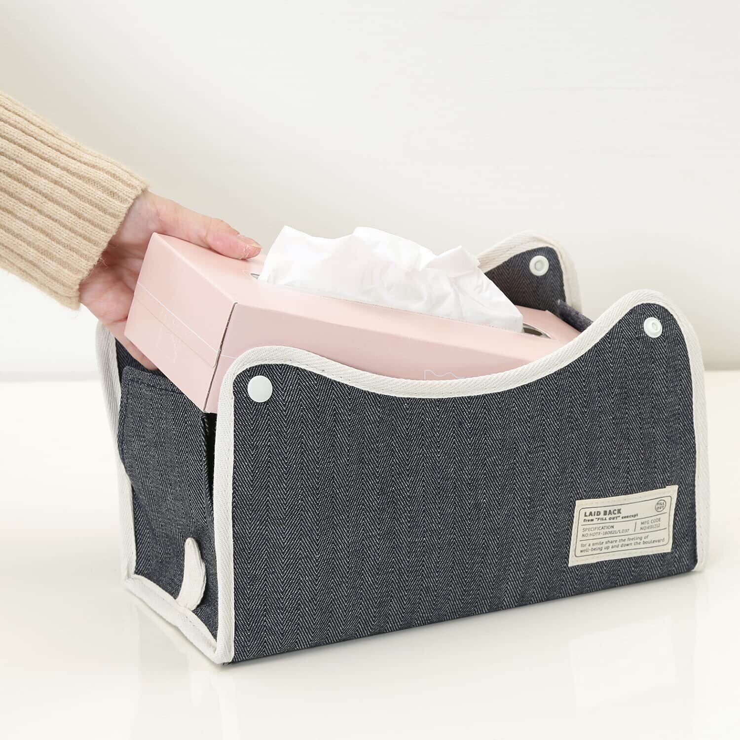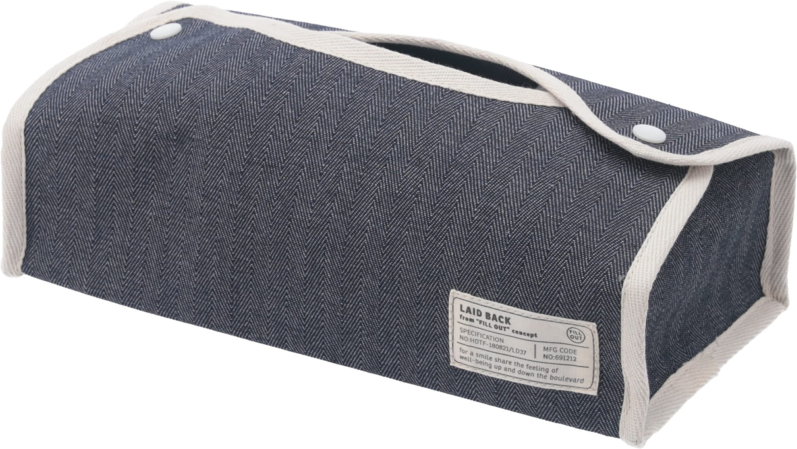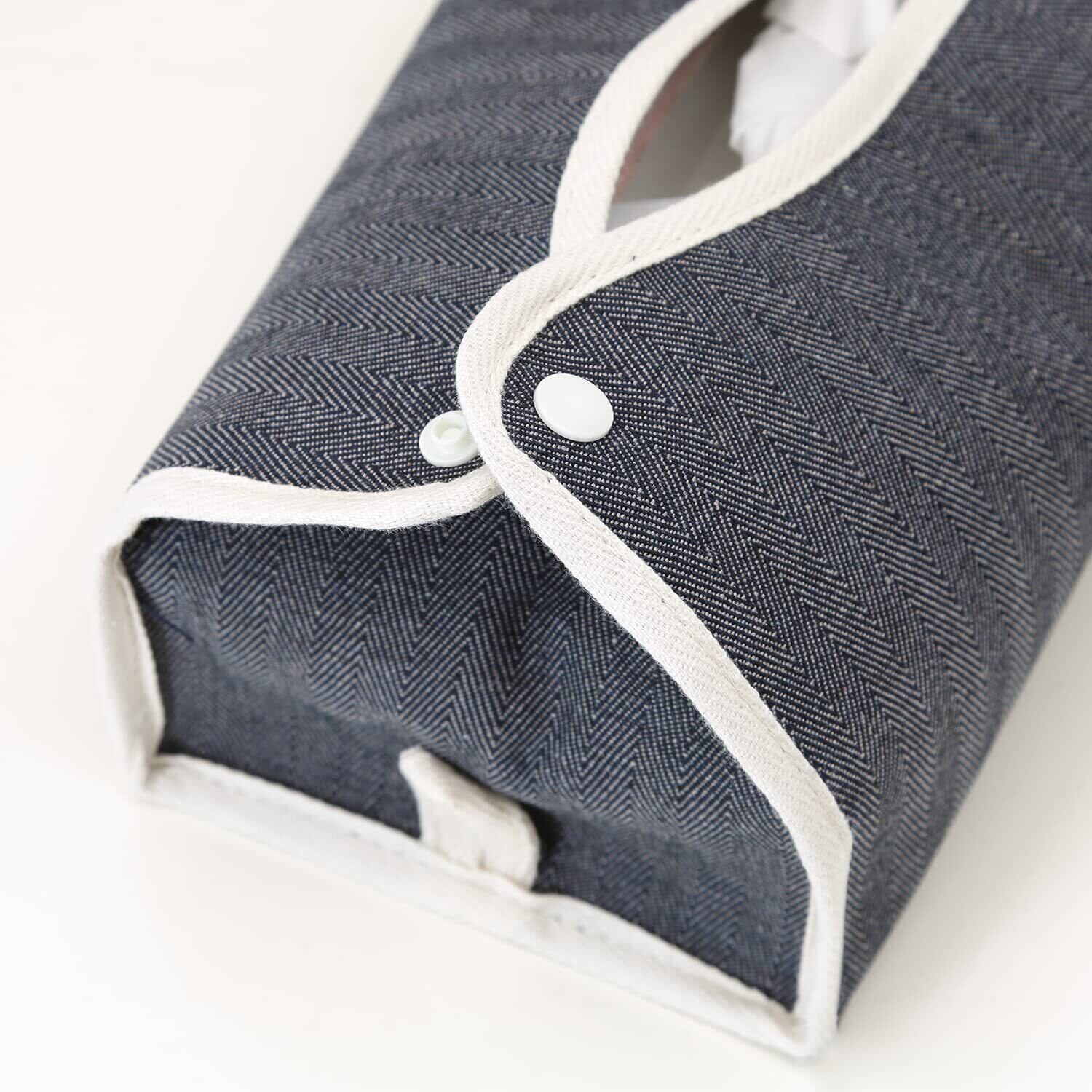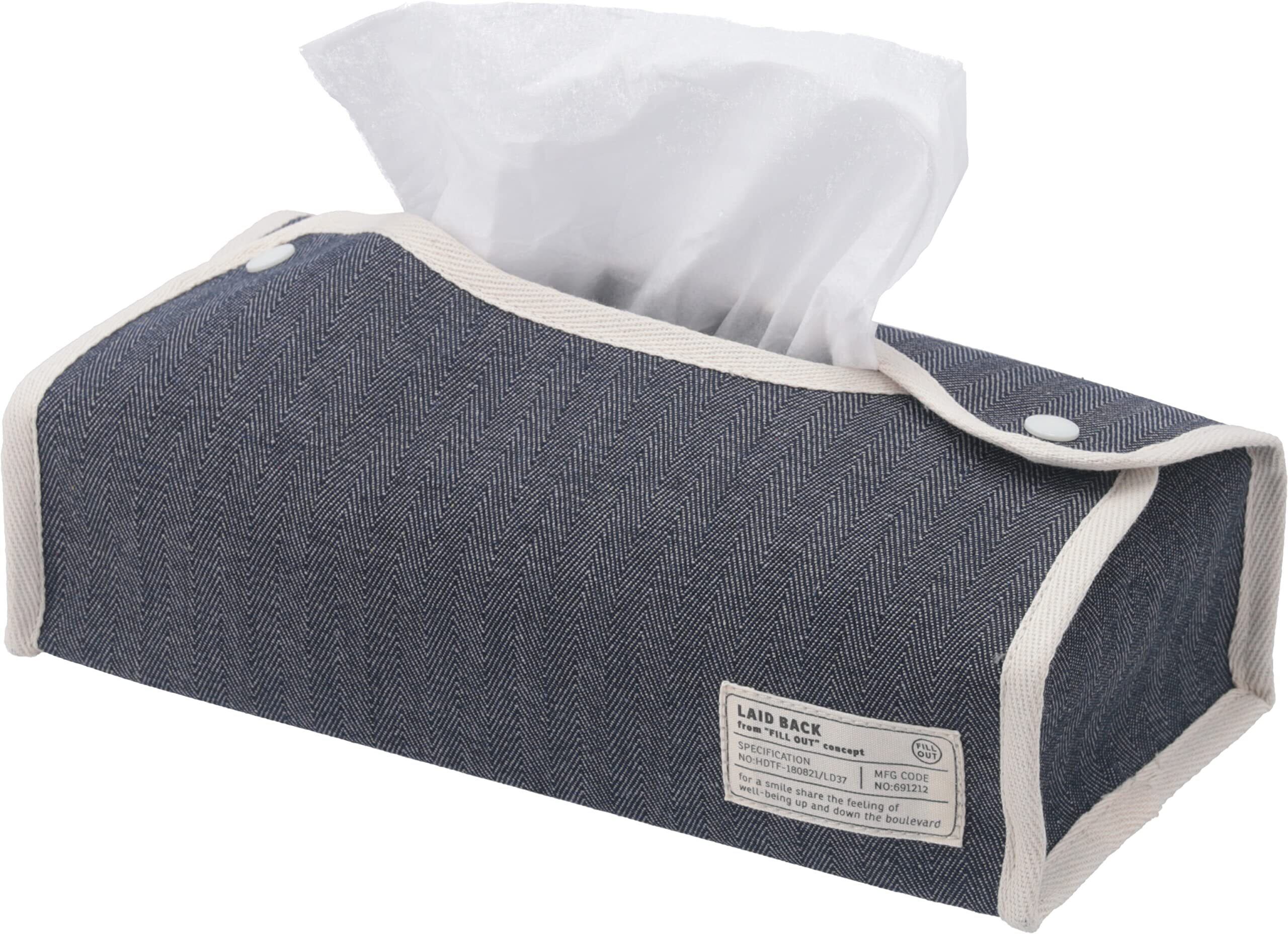 不二貿易(Fujiboeki) ティッシュケース カバー 幅27.5×奥行11×高さ6.5cm ネイビー レギュラーサイズ対応 吊り下げ可能 ヘリンボーン LAID BACK 27626