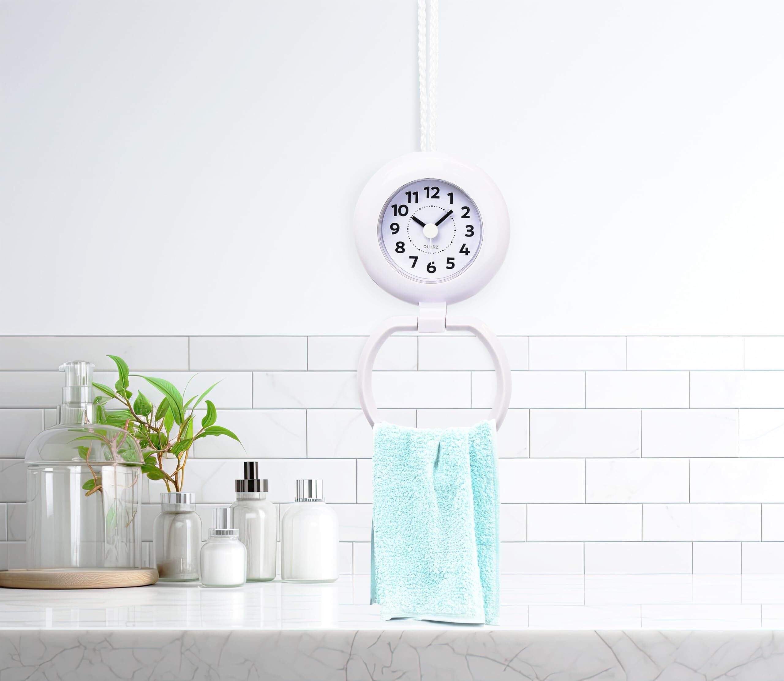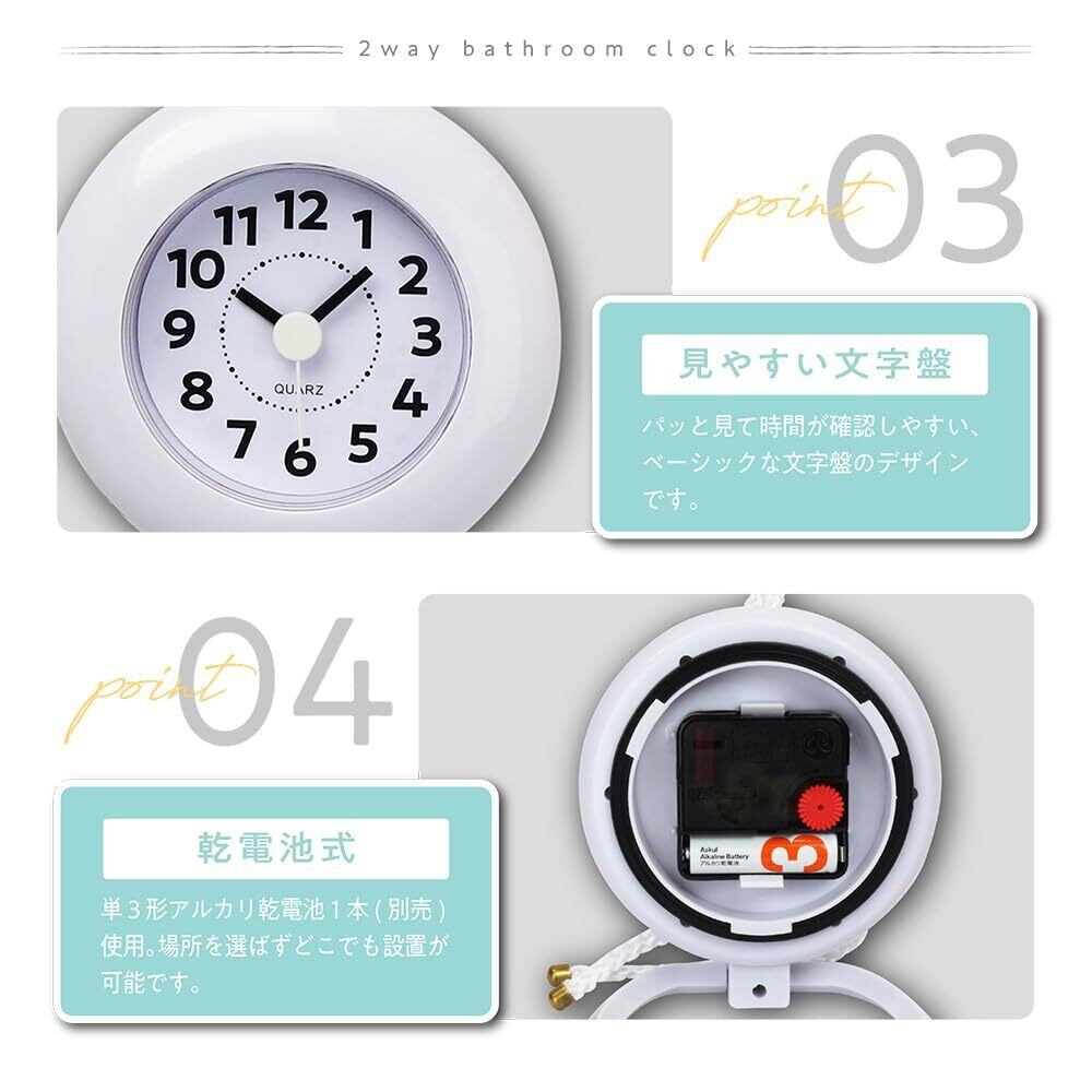 Estale 掛け時計 風呂用 時計 アナログ 文字盤 バスルームクロック 防水 防滴 IPX3 置きかけ兼用 タオルハンガーにもなる 2way