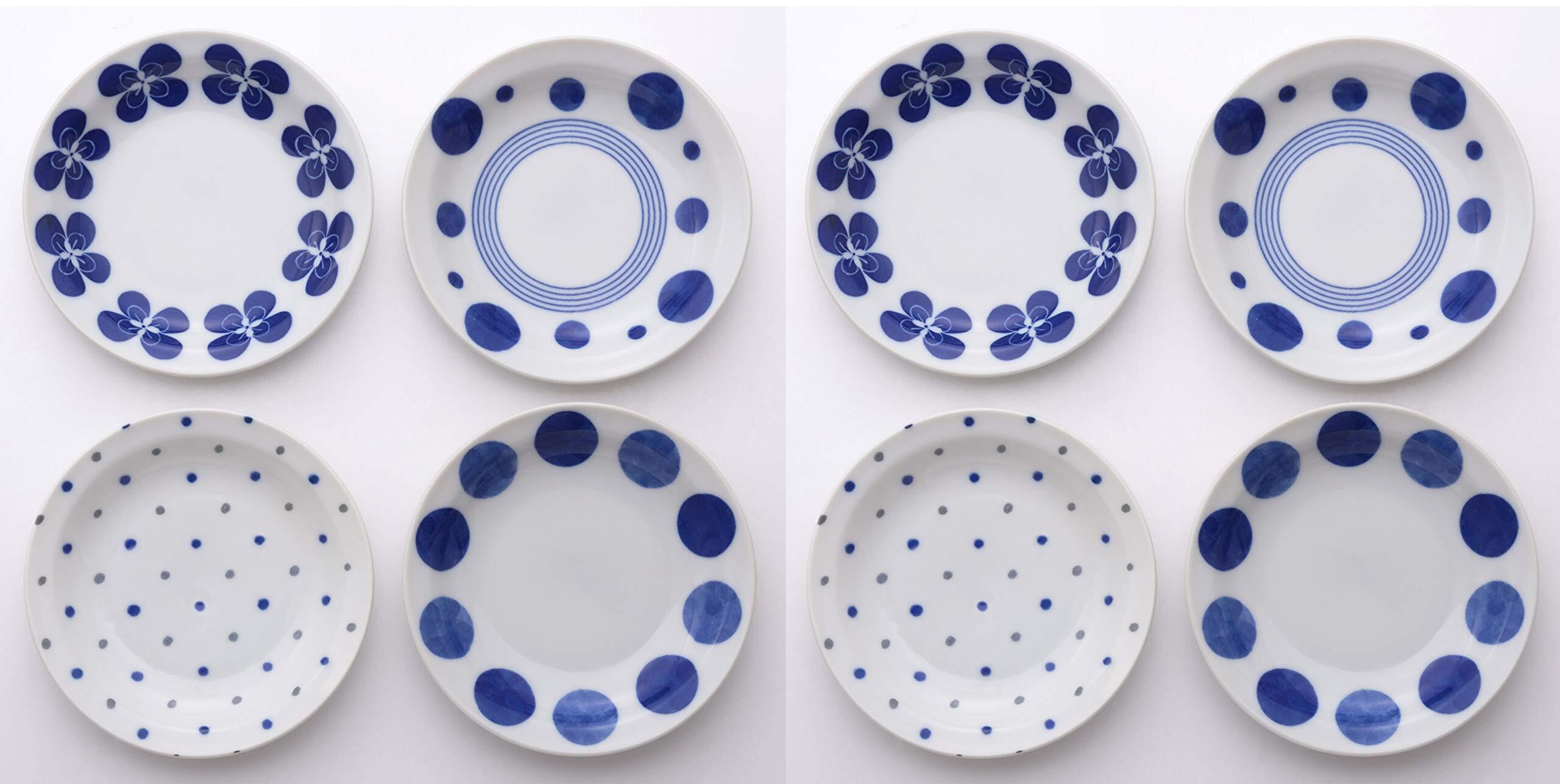 丸鎌陶器 お皿 皿 小皿 セット リム 8枚 おしゃれ 美濃焼 青色タッチリム小皿(4柄×2枚組)