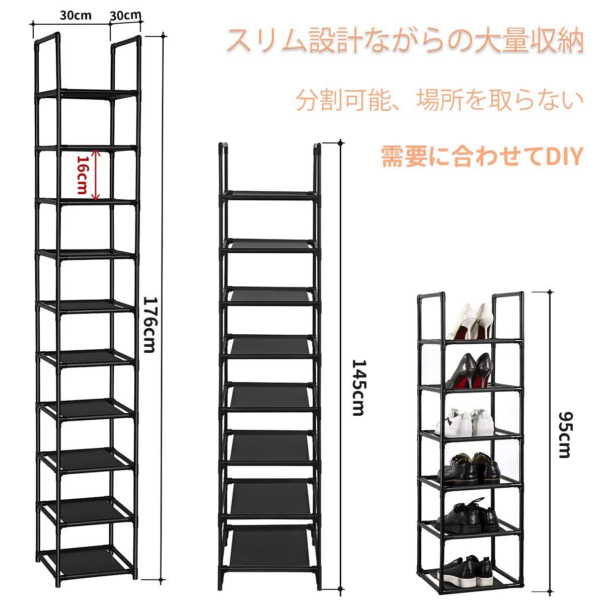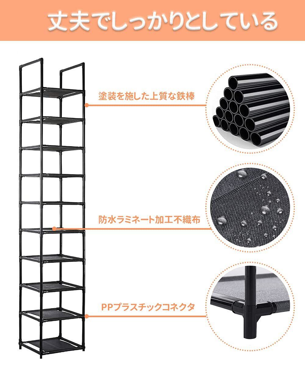 シューズラック 10段 靴収納 靴棚 10足 下駄箱 省スペース シューズボックス スリム 玄関に靴を効率収納 靴入れ 組み立て式 幅約30×奥行30×高さ176cm(ブラック)