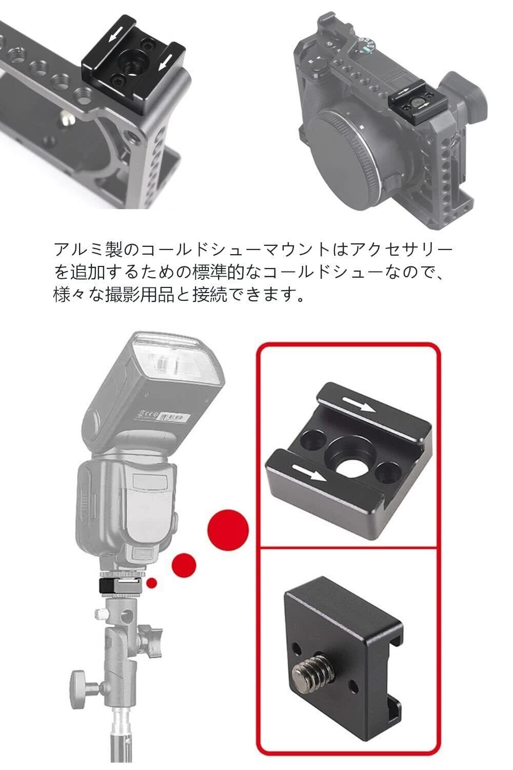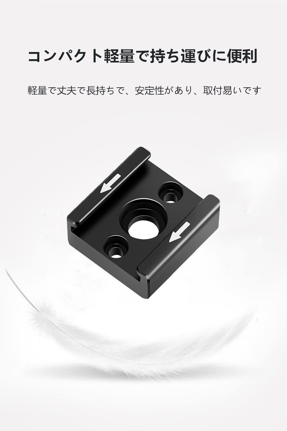 【幅広い互換性】このコールドシューアダプターは、カメラケージ、ハンドルなど、1/4"やM2.5のネジ穴のあるカメラアクセサリに取り付けることができます。標準のコールドシューマウントに対応でき、フィールドモニター、カメラライト、外部マイク、他のホットシューアクセサリの取り付けに最適です。