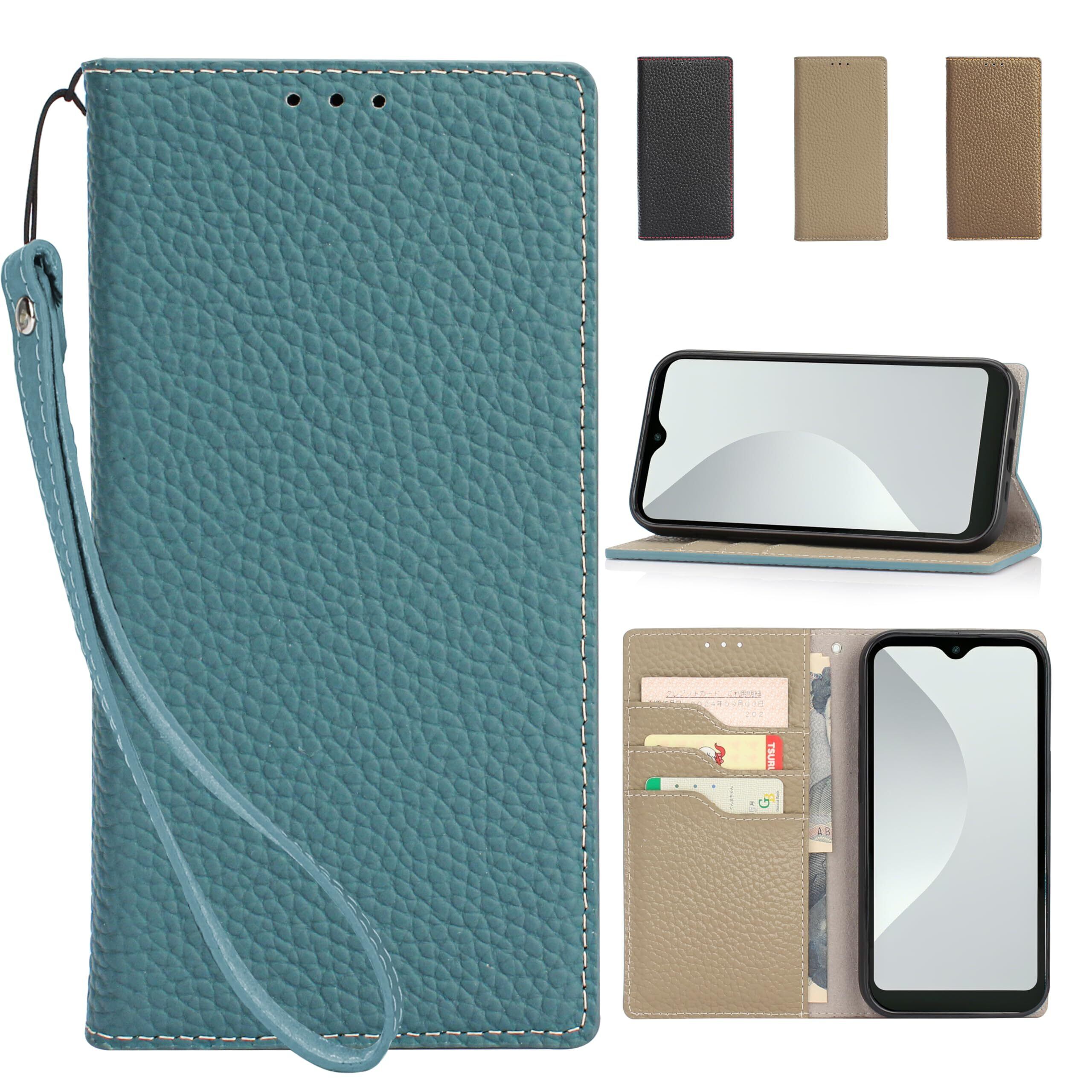 CLICSUN Arrows We 対応ケース F-51B FCG01 A101FC 高級 牛本革 アローズWE 対応ケース 手帳型 カバー Arrows We F-51B ケース 手帳型 本革 レザー カバー 全面保護 衝撃吸収 スタンド機能 ストラップ付き マグネット式 カードポケット ギフトボックス付き ブルー×グレー