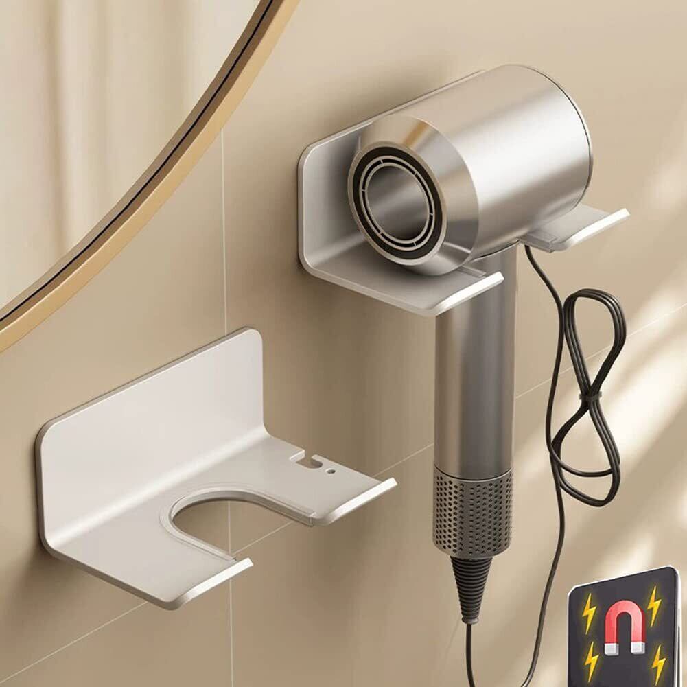 Manke マグネット ドライヤーホルダー 壁掛け ドライヤー フック アルミ ドライヤー置き ドライヤースタンド ホワイト