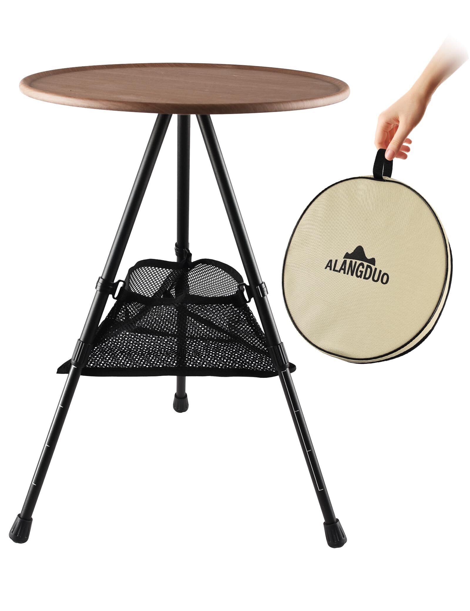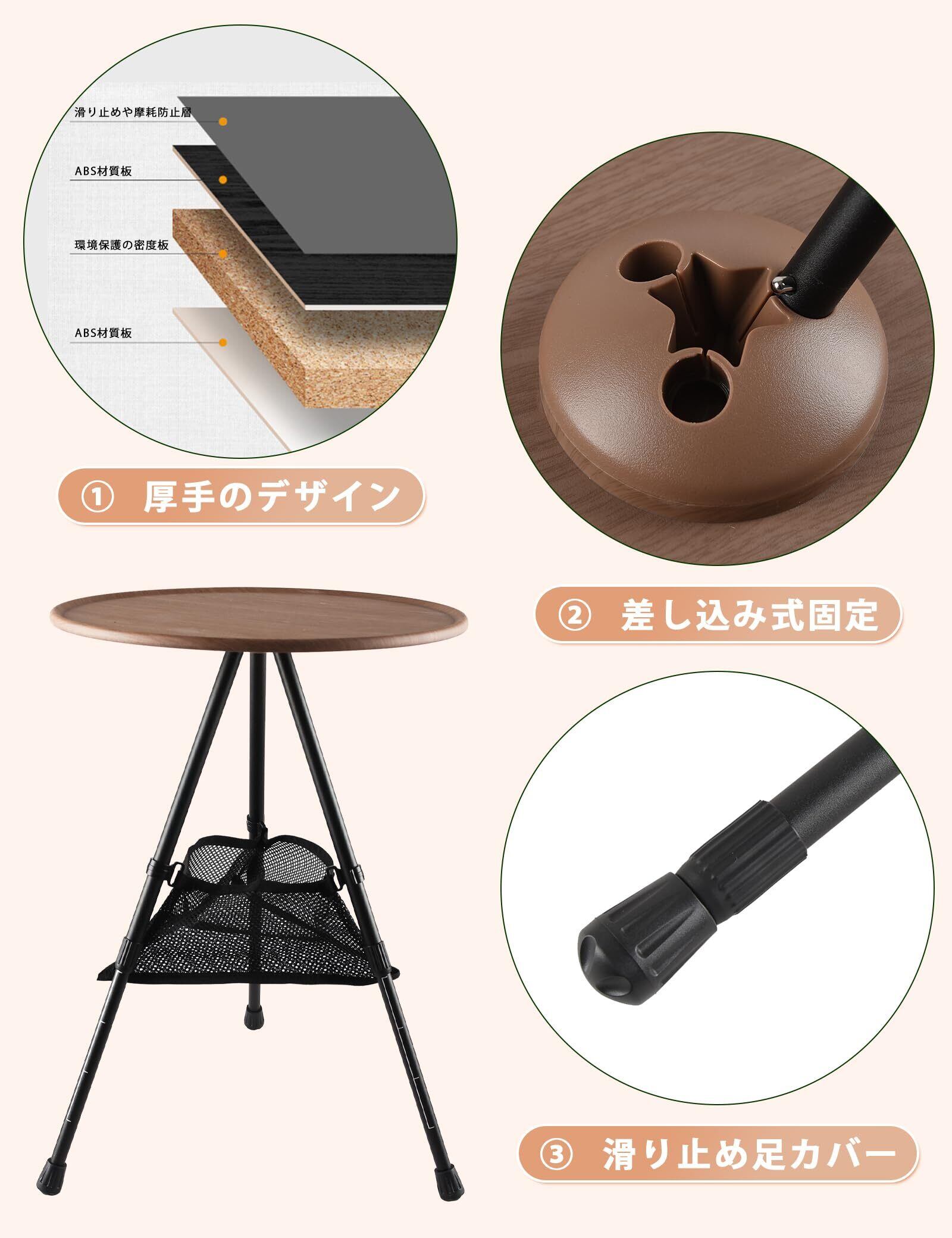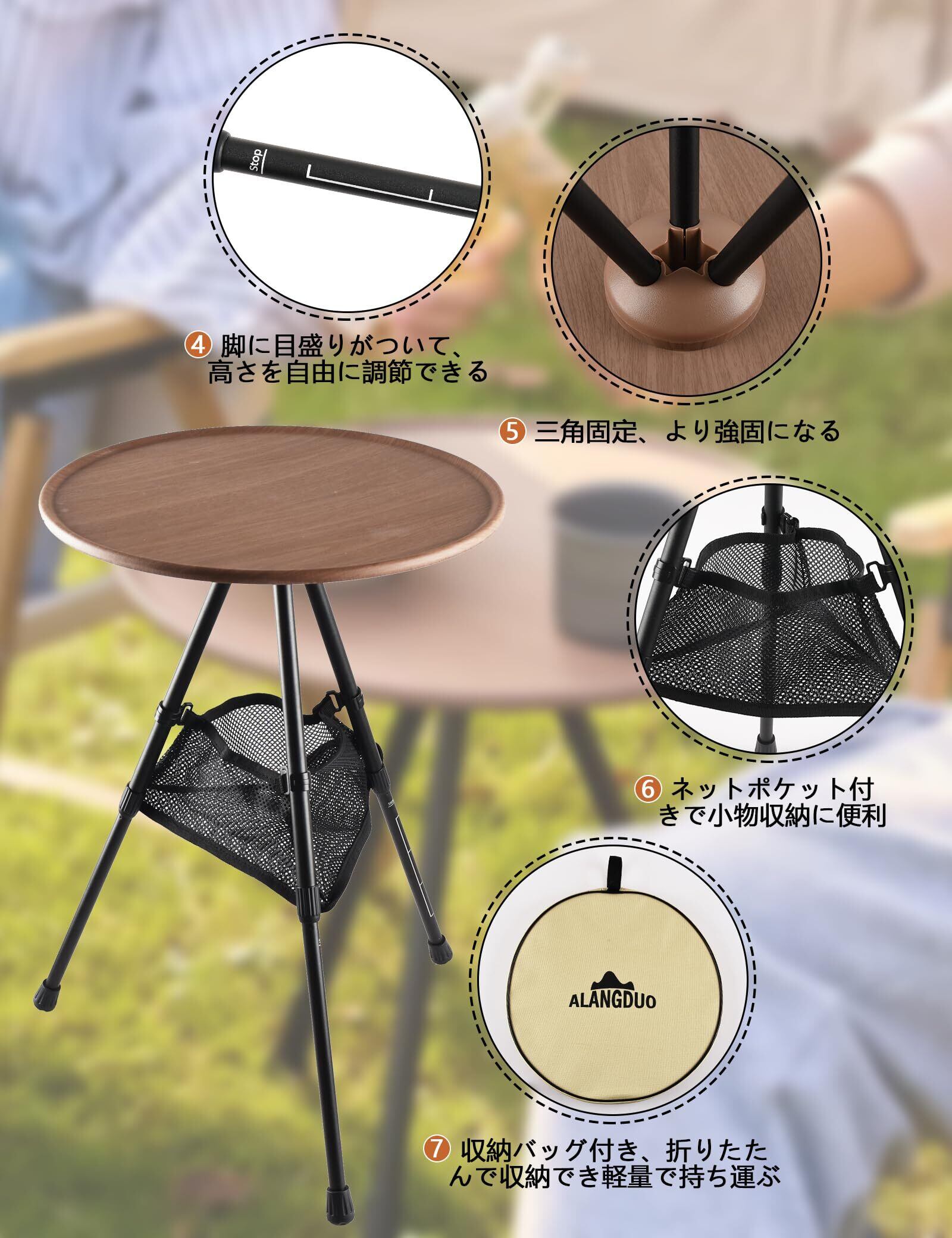 キャンプ テーブル 折り畳み アウトドア テーブル コンパクト ミニテーブル 折りたたみ ベランダ/ガーデン/屋内/屋外 サイドテーブル 高さ調整 釣り/登山/ソロキャンプ/バーベキュー/焚き火テーブル 収納バッグ付き 持ち運び (木目)