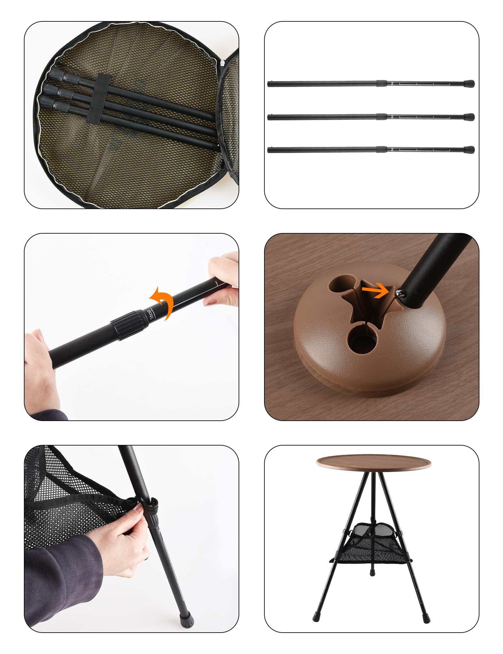 【高さ自由調整】キャンプ用テーブルの脚は自由伸縮調節可能に設計され、35cm~53.5cmの範囲でお好きな高度(5段階)を選択して回転して調整と固定ができます。キャンプ、車中泊などに食事の時は小さくてもテーブルがあると、背中を丸めなくて良いので腰を痛めにくい。コンパクトサイズなので、ソロキャンプやソロツーリングにおすすめです。