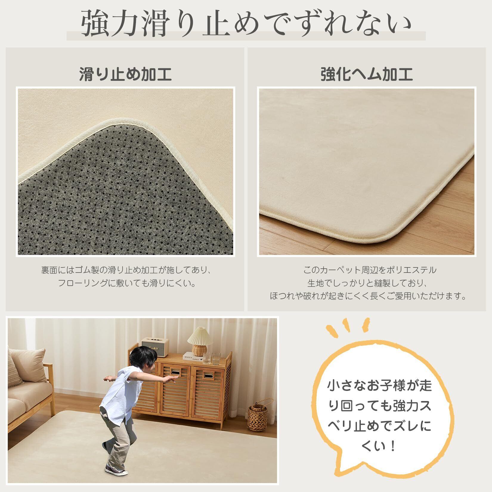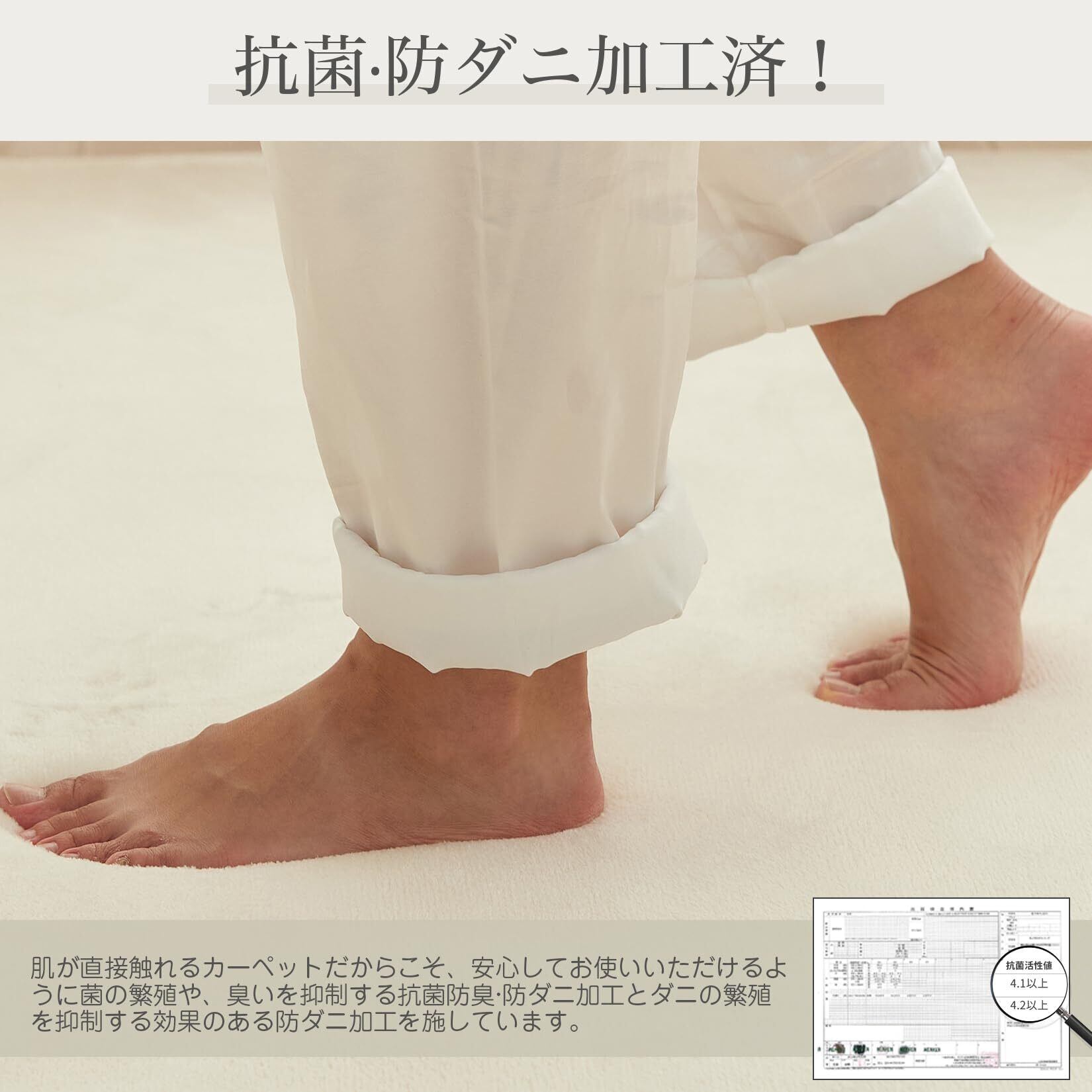 【短い毛足で簡単に掃除】カーペットの表面生地にはフランネル素材を使用し、繊細な毛先でやわらかく、滑らかな手触りを実現しました。短めの毛足でゴミが絡みにくく、一年中快適にお過ごしいただけます。
