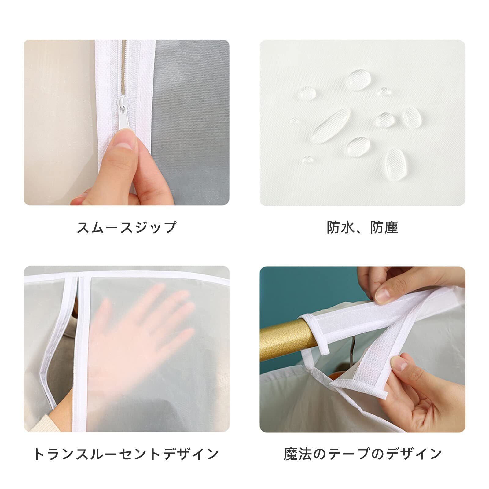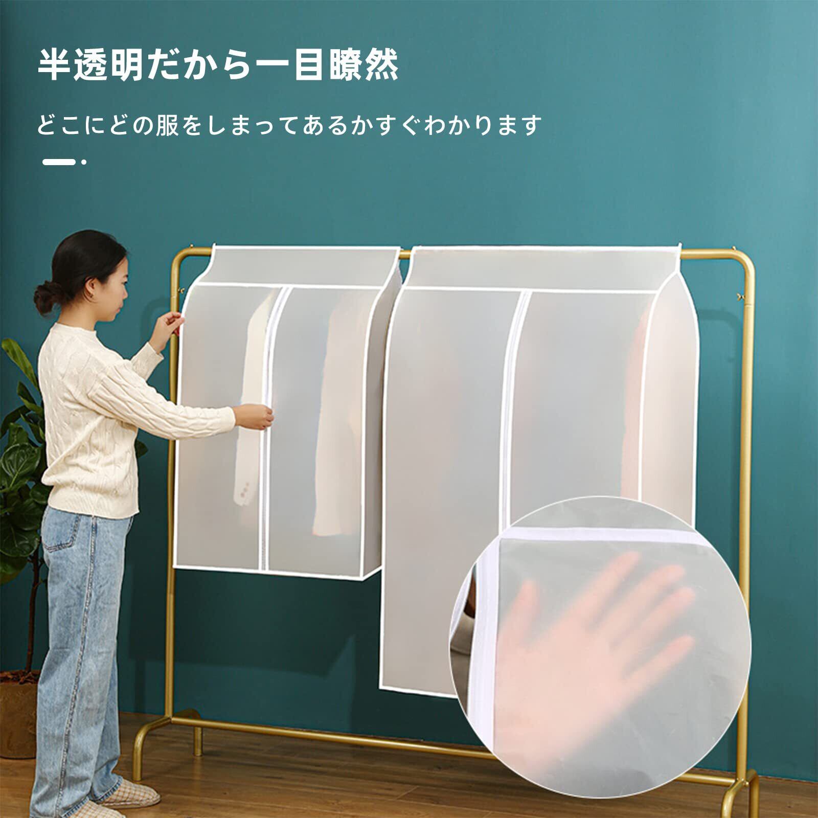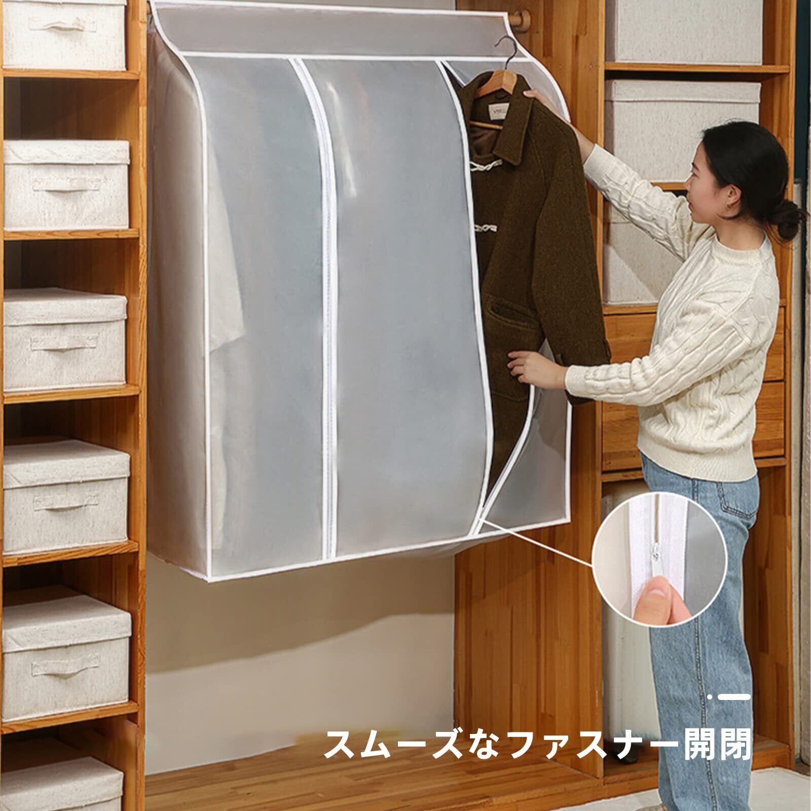 【防水性・通気性が抜群】 水に強く風通しのよいPEVA材質。湿気から服を守り、カビ・ニオイ・虫を防ぎます。汚れたら水拭き可能。タバコのニオイ・生活臭・虫食いから衣類を守って長持ちさせま