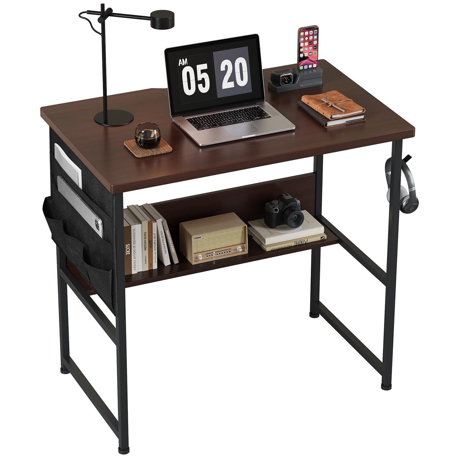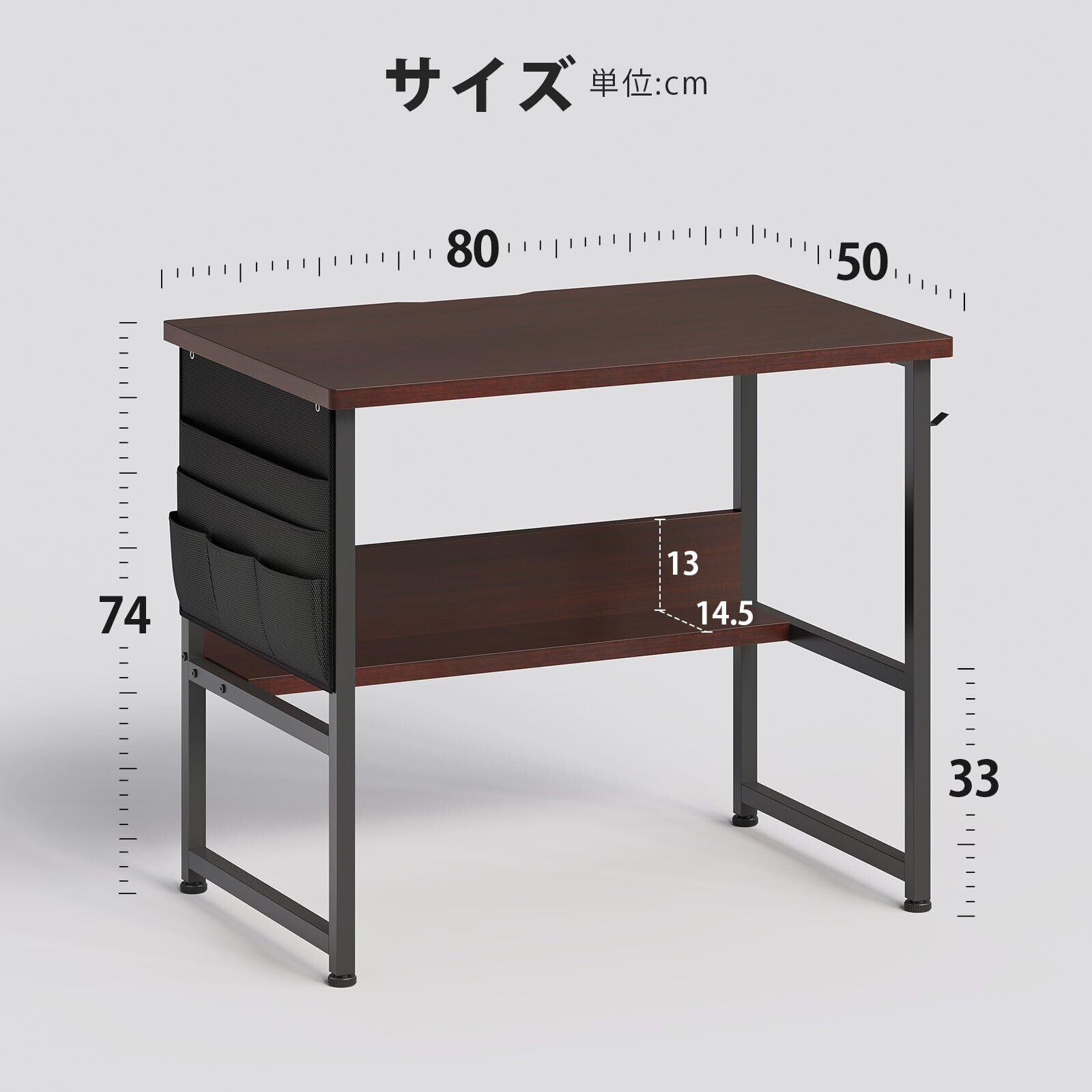 YeTom 机 pcデスク ラック付きデスク パソコンデスク つくえ 幅80cm×奥行50cm 収納袋付き 勉強机 デスク 下棚付きデスク 学習デスク 学習机 作業机 省スペース 収納 在宅ワーク デスク 事務机 ダークブラウン