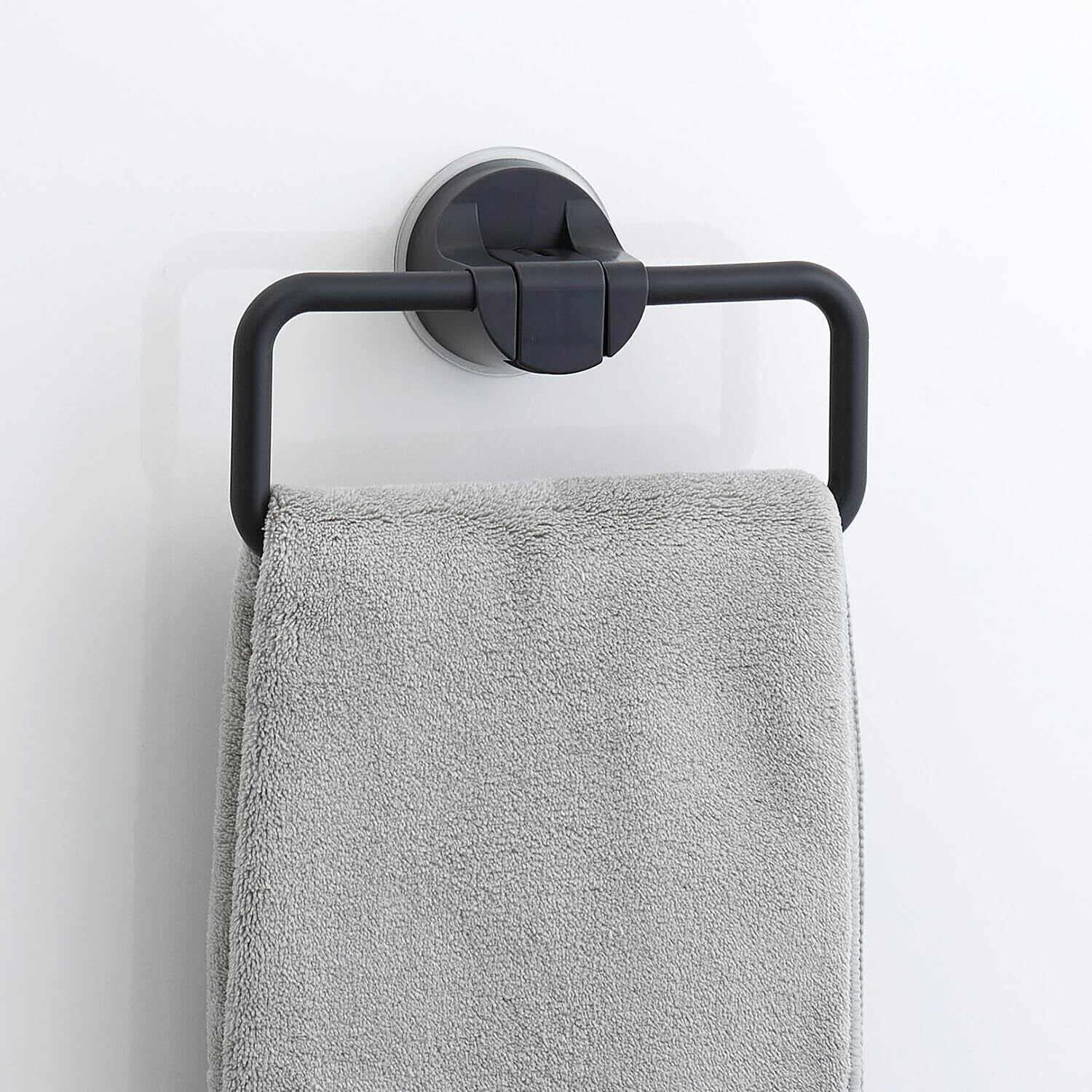 レバー式 強力 吸盤 タオルリング グレー 全長 18cm(干幅16cm) 耐荷重3kg