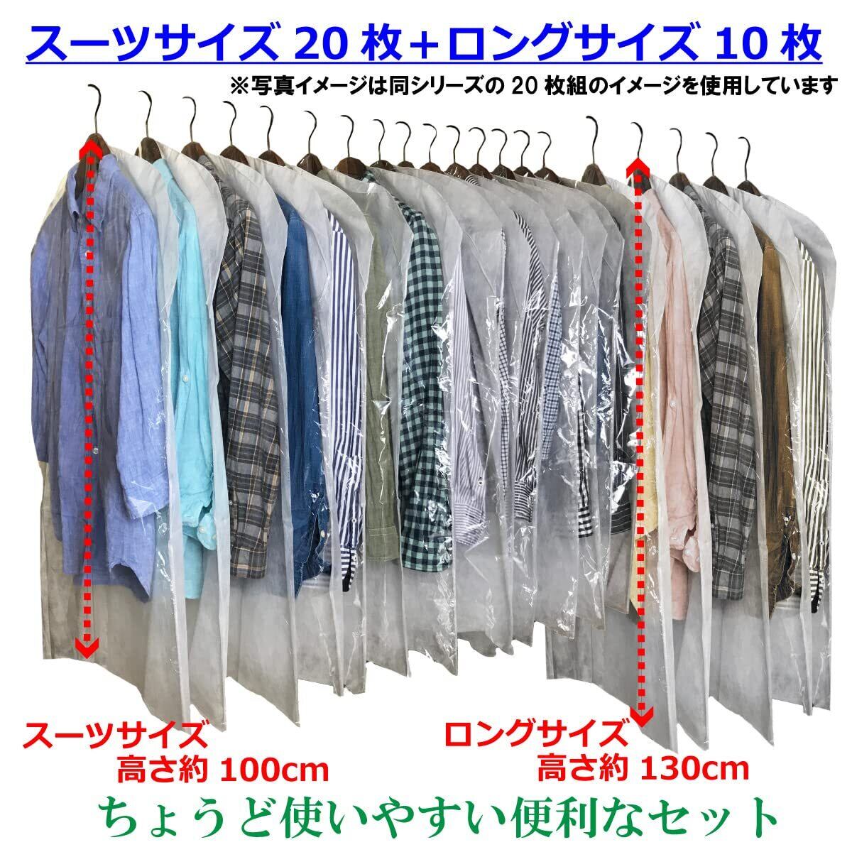 イニコライフ 衣類カバー 日本製 30枚組 洋服 不織布 カバー 透明 通常20枚+ロング10枚 クリアタイプ 前面はハッキリ見えるクリア素材 背面は通気性の良い不織布素材 大切な衣類を安心保管