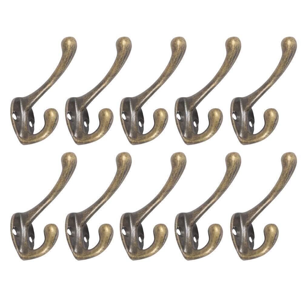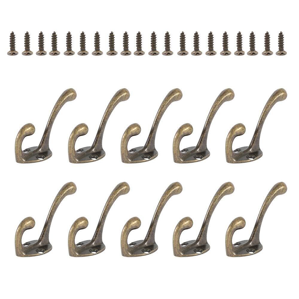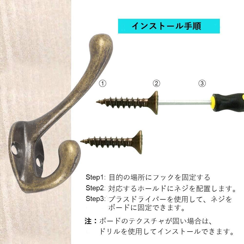Interlink フック 壁掛け 10個セット ステンレス アンティーク 調 高耐荷重 耐荷重15kg 服に優しい 傷防止 落下防止 ネジ付き コート 帽子 洋服掛け 玄関 浴室 寝間 台所 キッチン 吊り下げ収納 アタッチメント付属 (グリーンブロンズ)