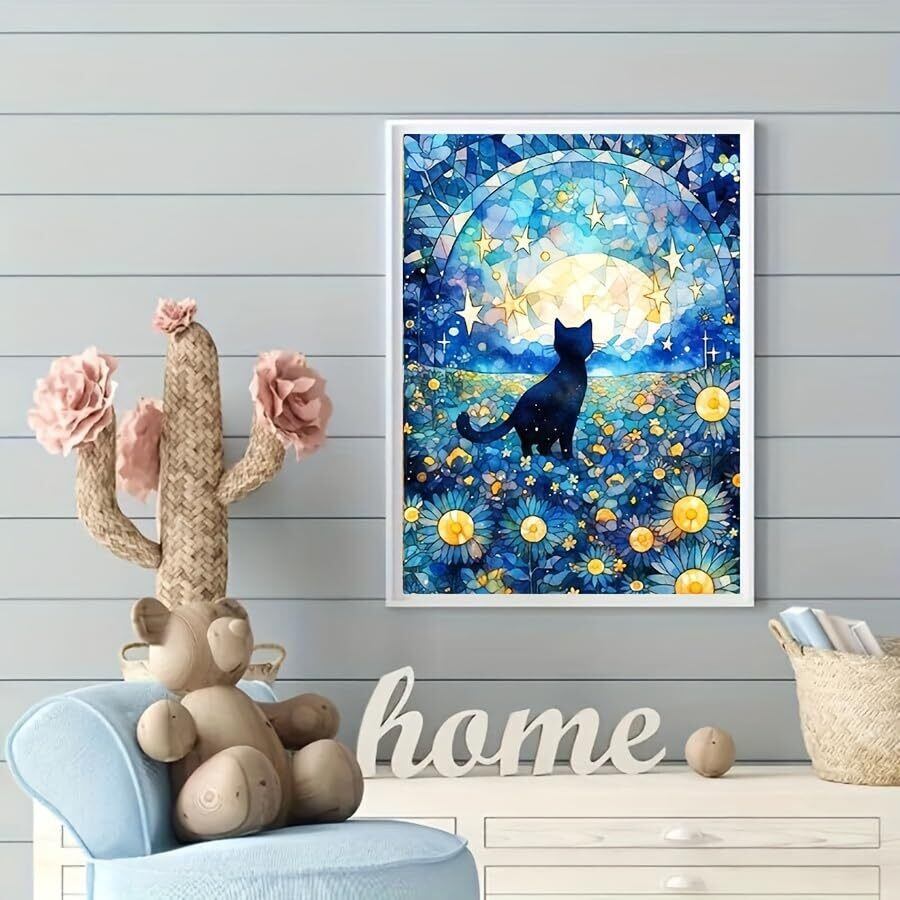 5D ダイヤモンドアート DIY 星空の花海と猫 30x40cm ダイヤモンドペインティングキット 初心者に最適 DIY 風景ダイヤモンドペインティングモザイク手作りアートホームデコレーション