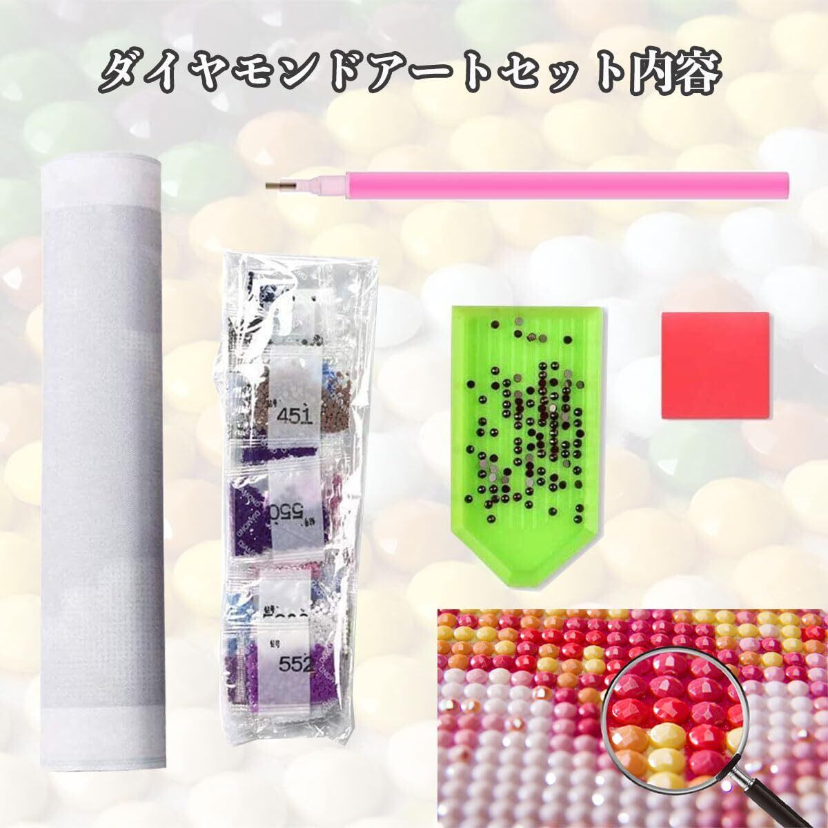 【ダイヤモンドアートセット内容】1x 5Dダイヤモンドアート、1x ダイヤモンドキット、1x ダイヤモンド粘着ペン、1xトレー、1x グルー。家族と暇つぶしで、ダイヤモンドアートを一緒に楽しましょうよ!DIYの絵画、創意工夫、ダイヤモンドビーズ樹脂で絵を描きます。