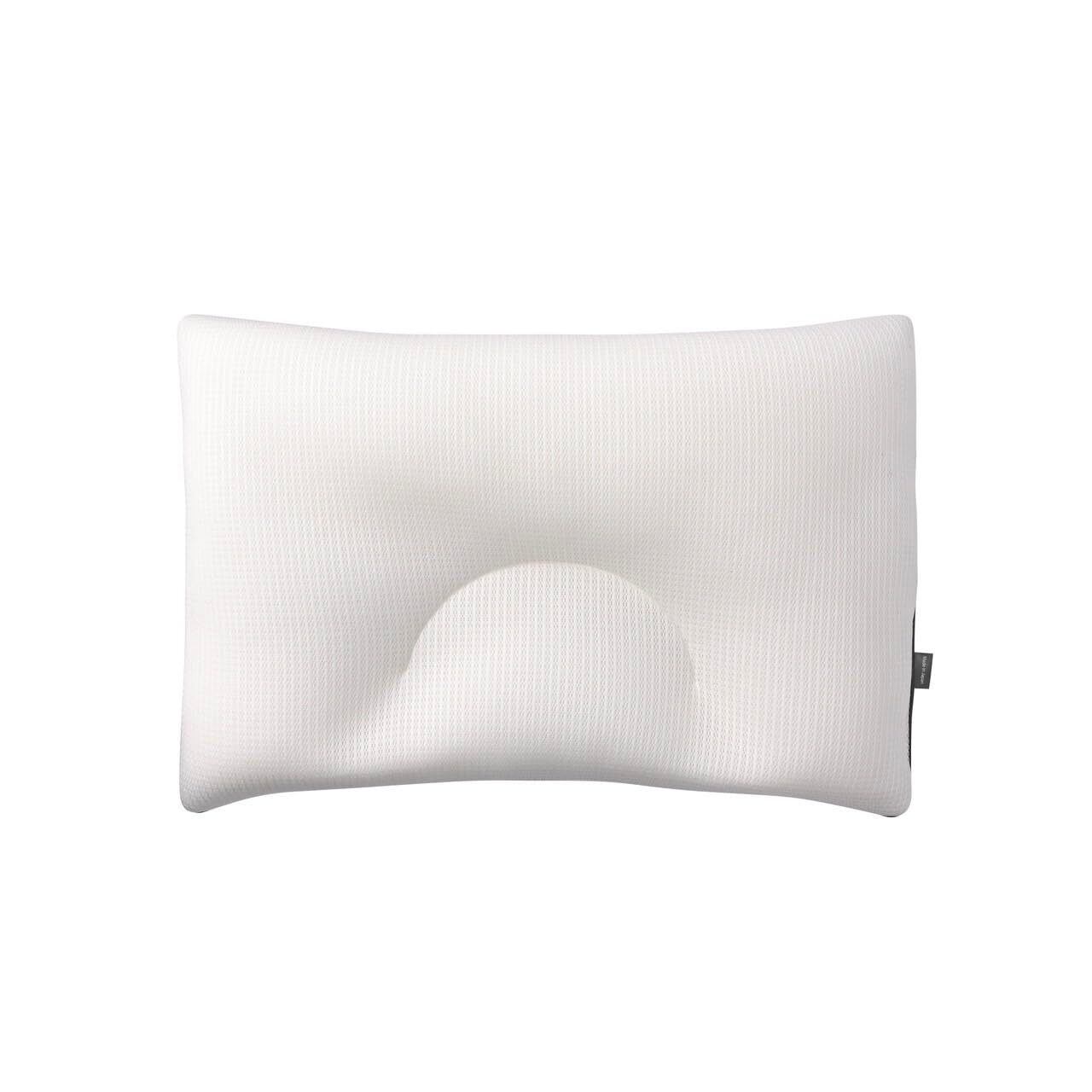 ポイント1,成長に合わせて頭から背骨にかけてのS字カーブがきちんと形成されるよう、首に隙間ができにくく 後頭部が枕の中心にフィットする形状になっています。