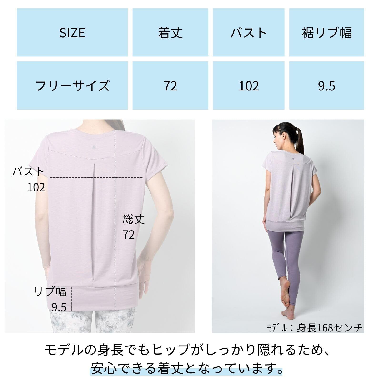 [machikaada] ヨガウェア トップス Tシャツ 体型カバー 半袖 ロング丈 着丈長い ロング丈 丈長 ヨガ ホットヨガ ピラティス フィットネスウェア かわいい おしゃれ