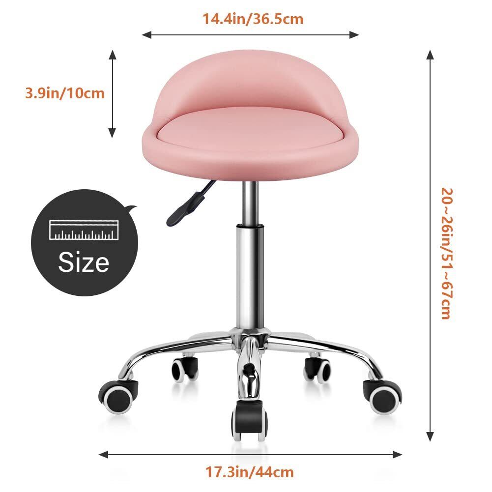 KKTONER 低い背もたれ付き昇降スツール キャスター付き 丸回転椅子 製図仕事SPA作業椅子カウンターチェア デスクチェア PUレザー (ピンク)