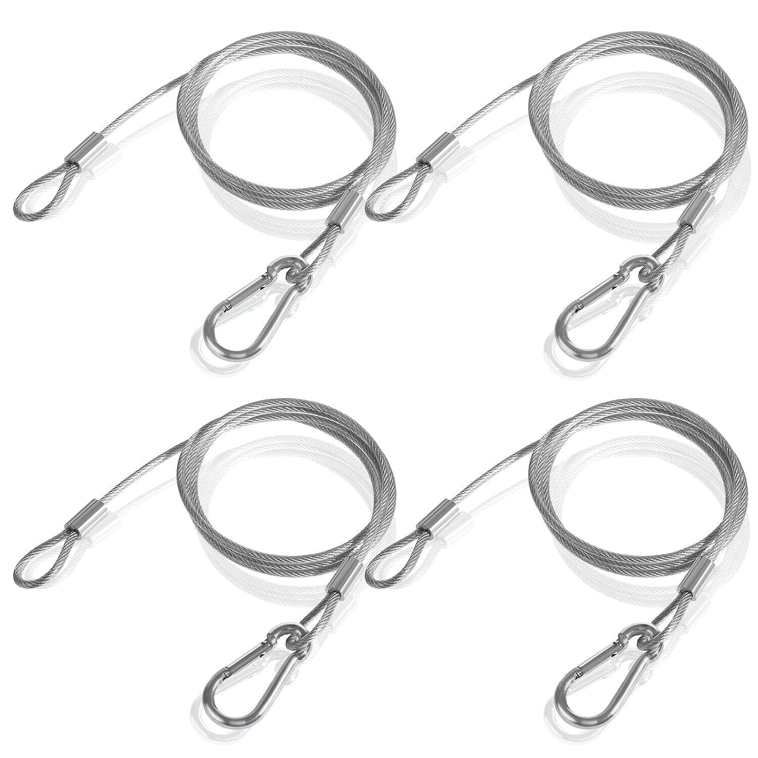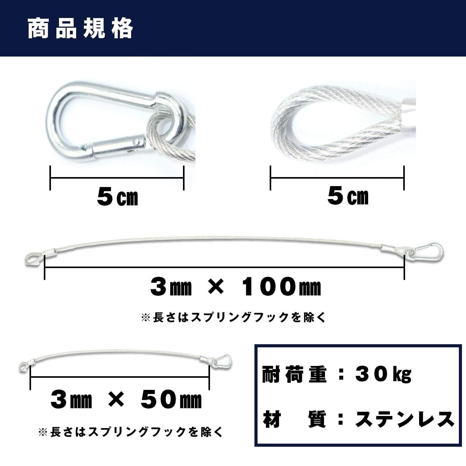 【 商品仕様 】 ●4本セット ●ワイヤー部分100cm(※かしめ部分含む) カラビナ部分5cm ●最大荷重:約30kg ●ステンレス製