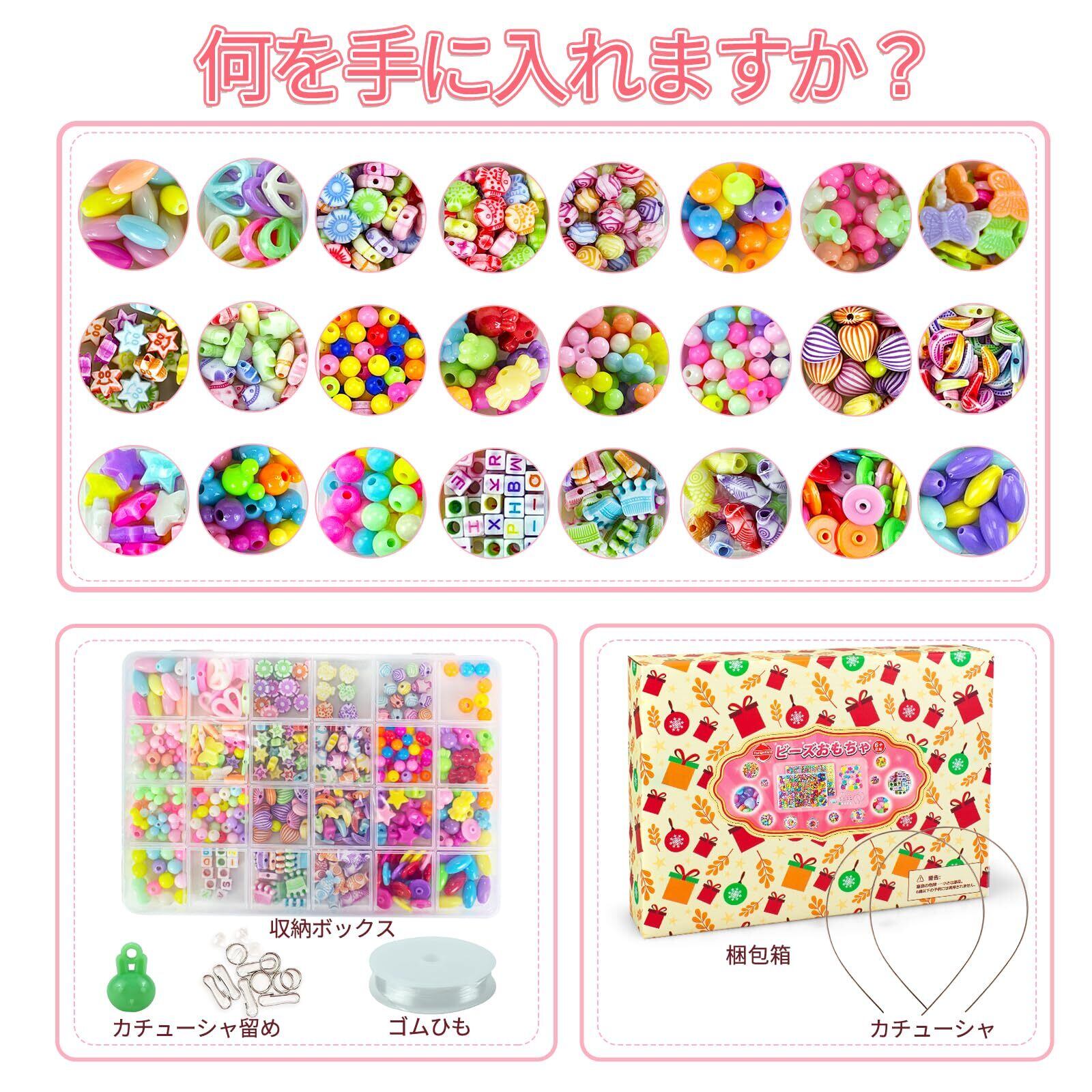 ビーズ おもちゃ 女の子 手芸 DIY アクセサリー 手作りキット ブレスレット ネックレス 紐通しカラフル カチューシャ 約450個 24種類 収納ケース付き ギフト 記念日 クリスマス 誕生日 プレゼント