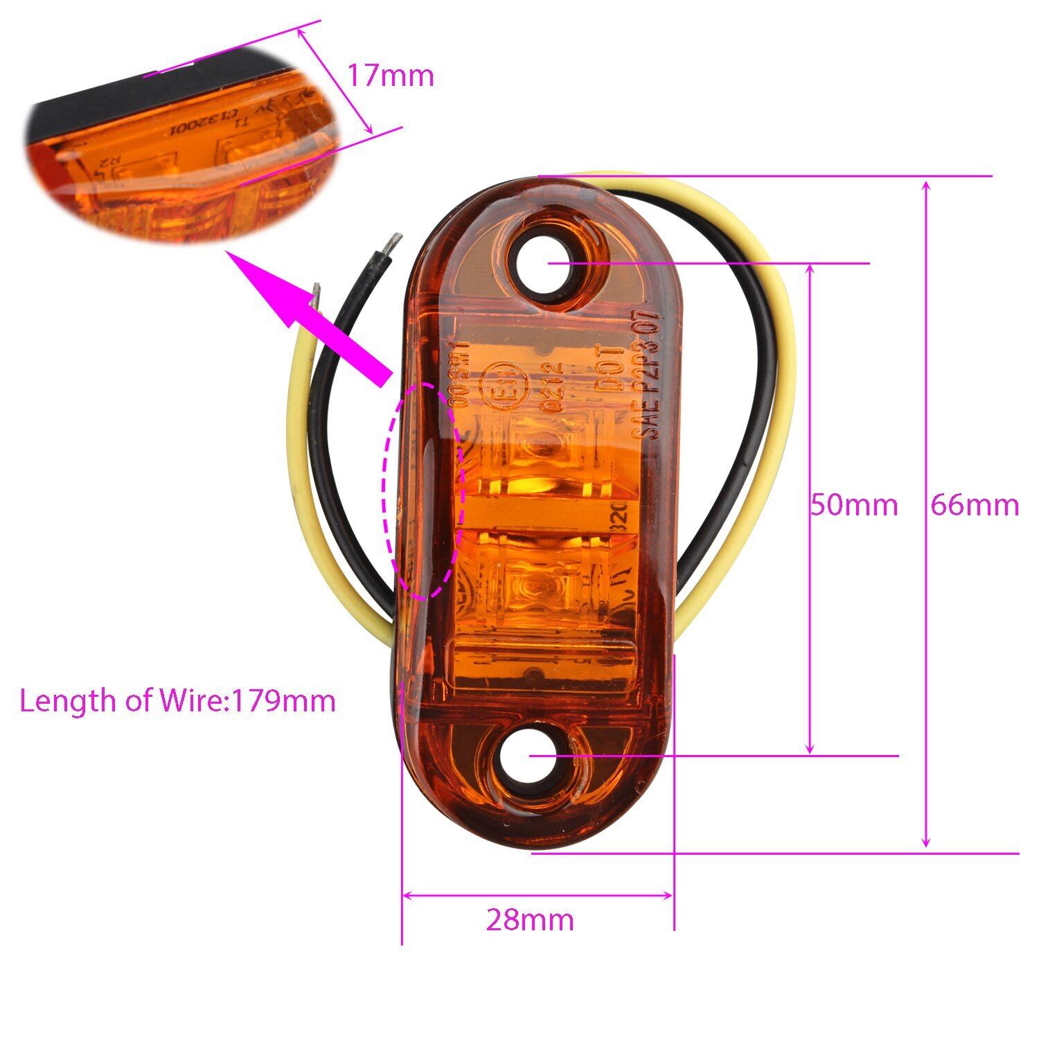 Fushengda 4個 12V/24V ピラニア 自動車 トラック トレーラー適用 LEDサイドマーカーライト ウインカーランプトラック 電球 アンバー 夜間停車用