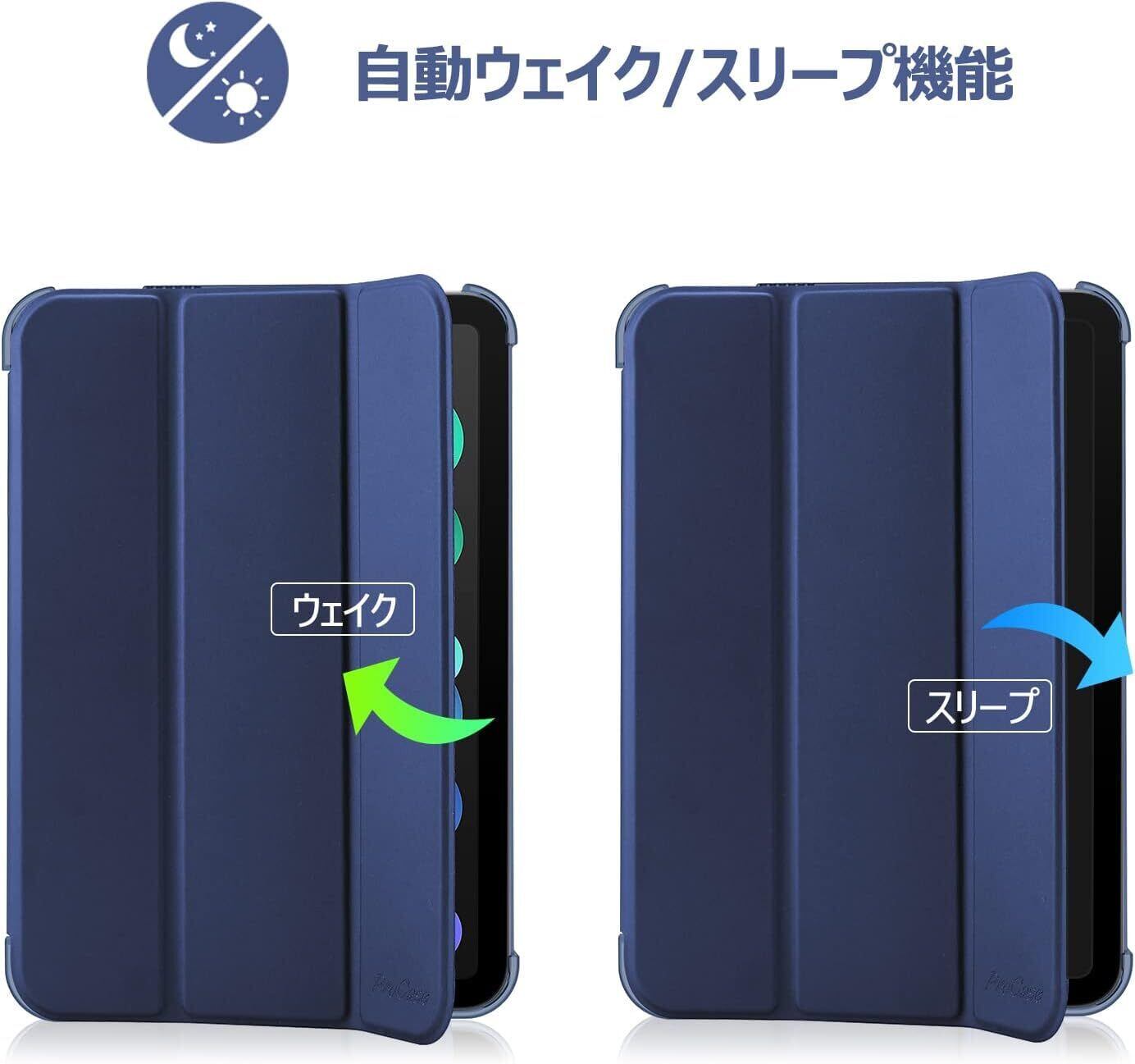 ProCase iPad Mini A17 Pro 第7世代 2024 Mini6 ケース 2021 8.3インチ、スリム 三つ折りスタンド ハードバックカバー、適用機種:iPad Mini A17 Pro 第7世代 2024、Mini 6世代 2021 -アイアンブルー