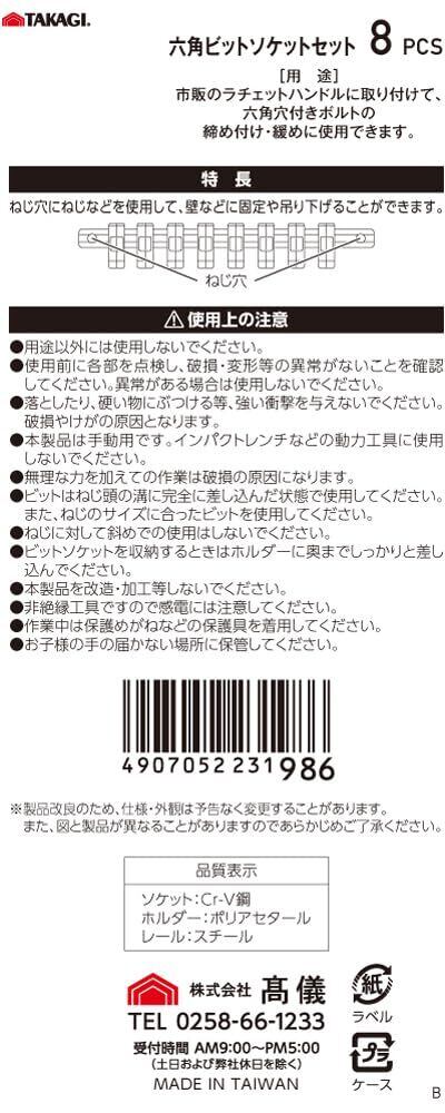 高儀(Takagi) 六角ビットソケットセット 8pcs 9.5mm角