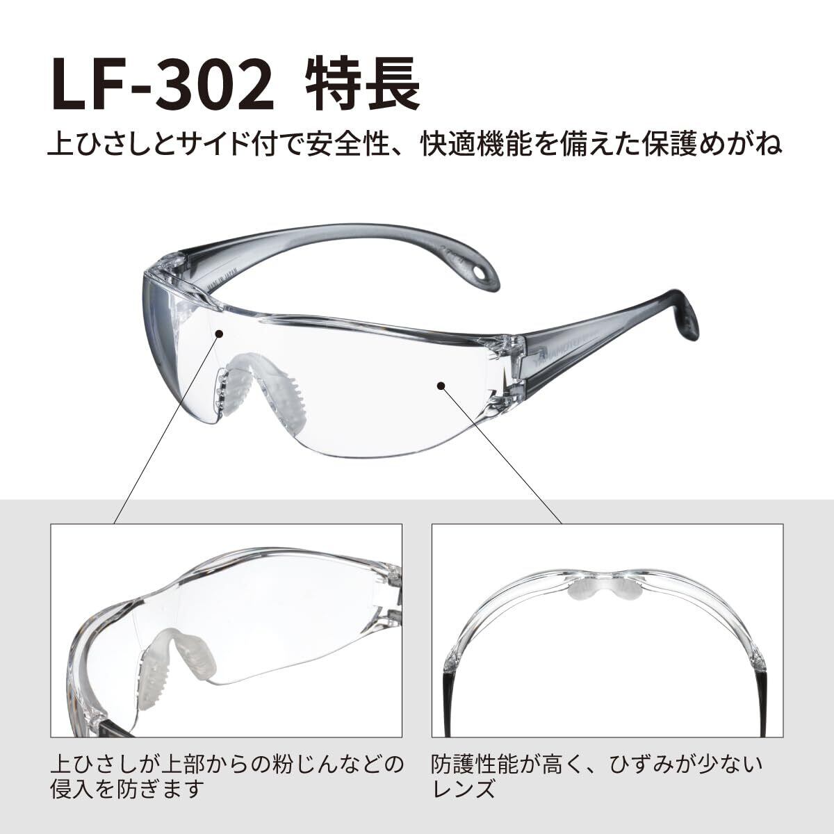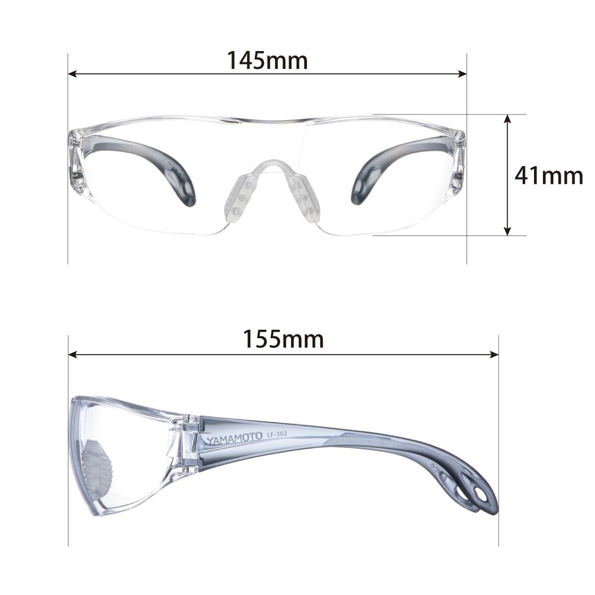 [山本光学] YAMAMOTO LF-302 ライトフィット保護めがね L-FIT2 上部ひさしカバー付き 双球面レンズ クリアグレー PET-AF(両面ハードコートくもり止め) 日本製 JIS 紫外線カット