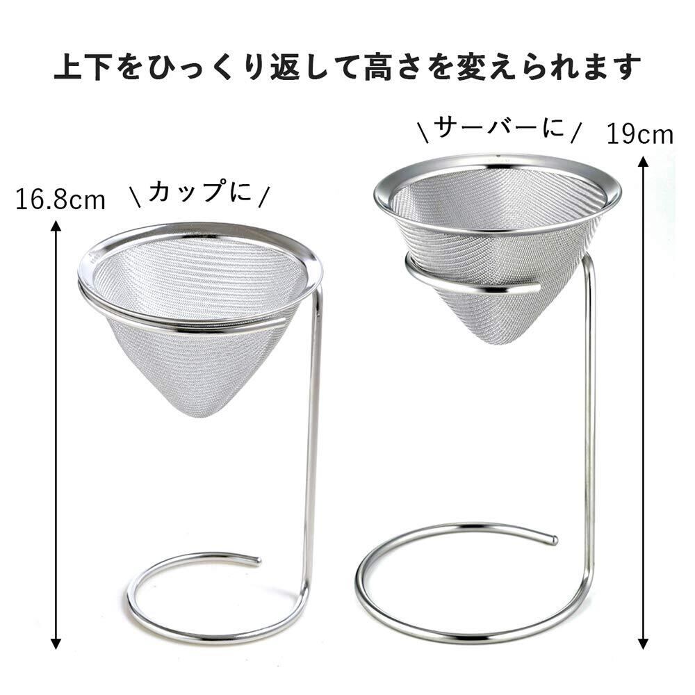 スタンドをひっくり返して高さ調整可能。小さい径を上にすれば、高さのあるコーヒーサーバーに使える