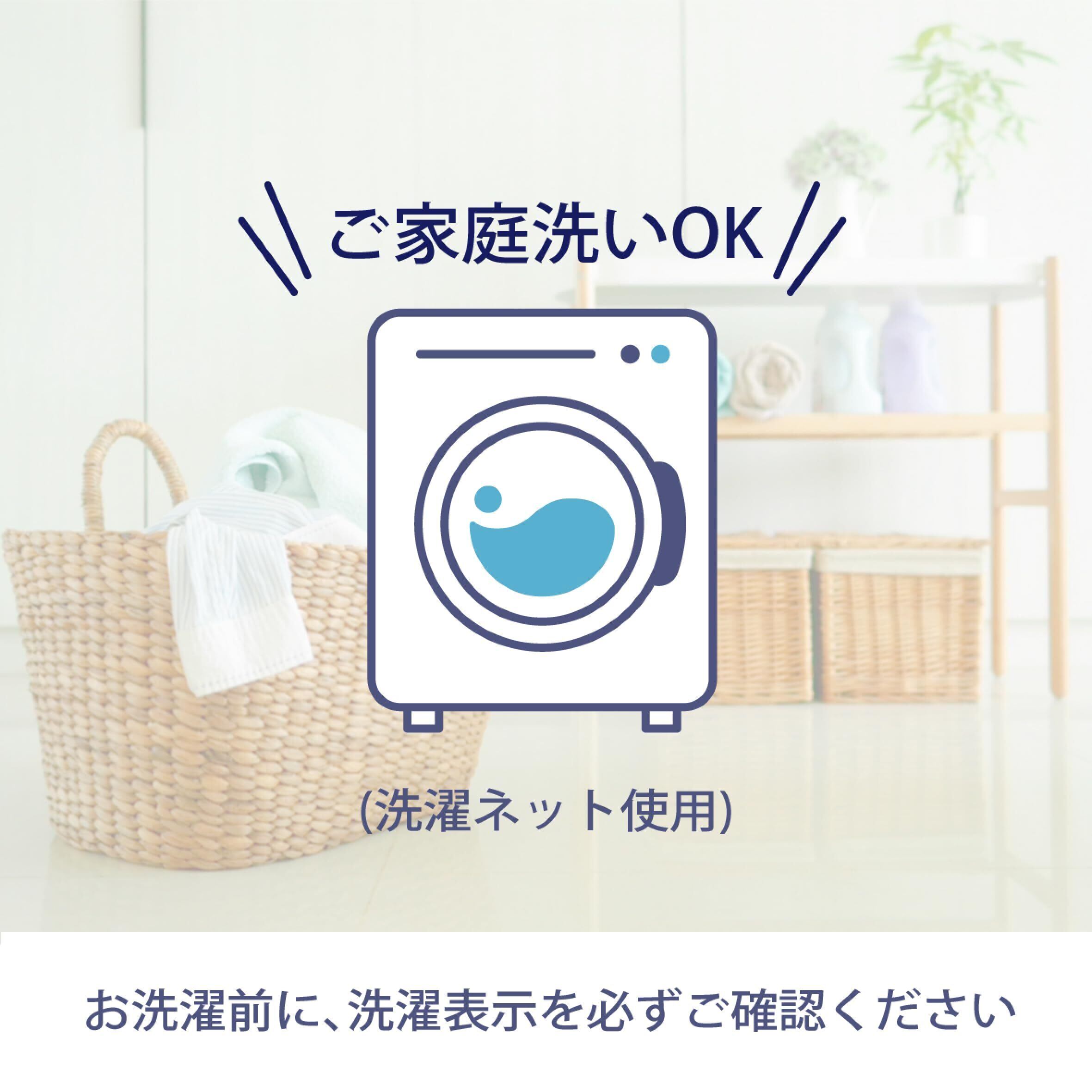 洗濯機で洗えるのでいつでも清潔にお使いいただけます。(洗濯ネット使用)