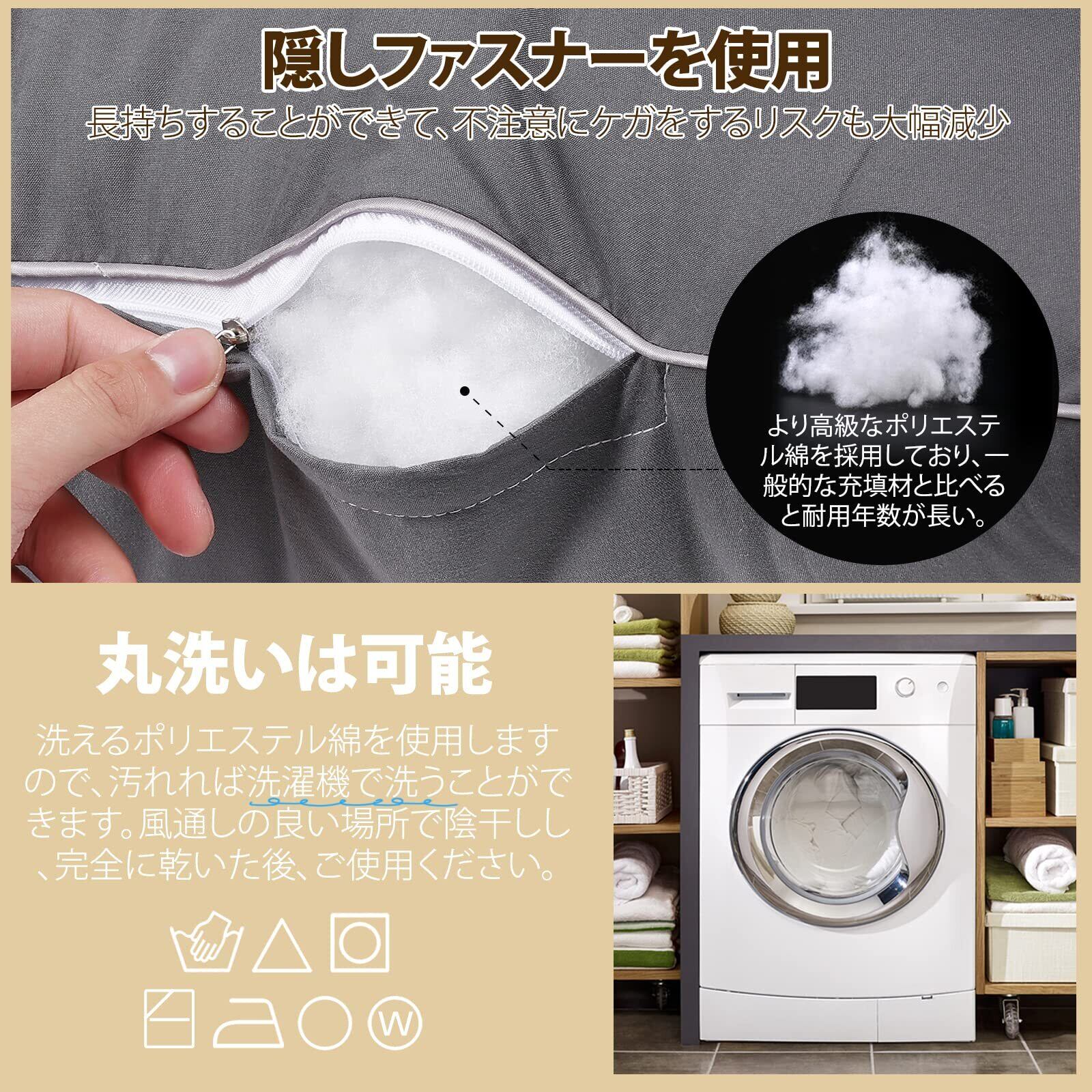 【ボリューム感満喫】ホテル枕の補充材によく使われる中空綿を贅沢に詰め込みましたので、他にはないボリューム感を満喫できます。長期間使用しても型崩れが起きにくいです。ヌードクッションはより長く高品質な状態を保つため、クッションに丁寧なパイピング縫製を行いました。クッションの縫製破れや中身が漏れるなどの心配はありません。