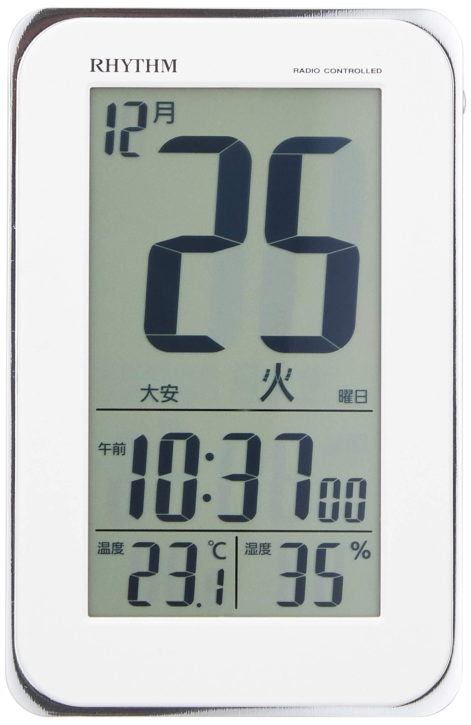 リズム(RHYTHM) 目覚まし時計 電波時計 電子音アラーム 温度 湿度 日めくり カレンダー 六曜 ライト付き 白 12.8x8.2x2.3cm 8RZ139SR03
